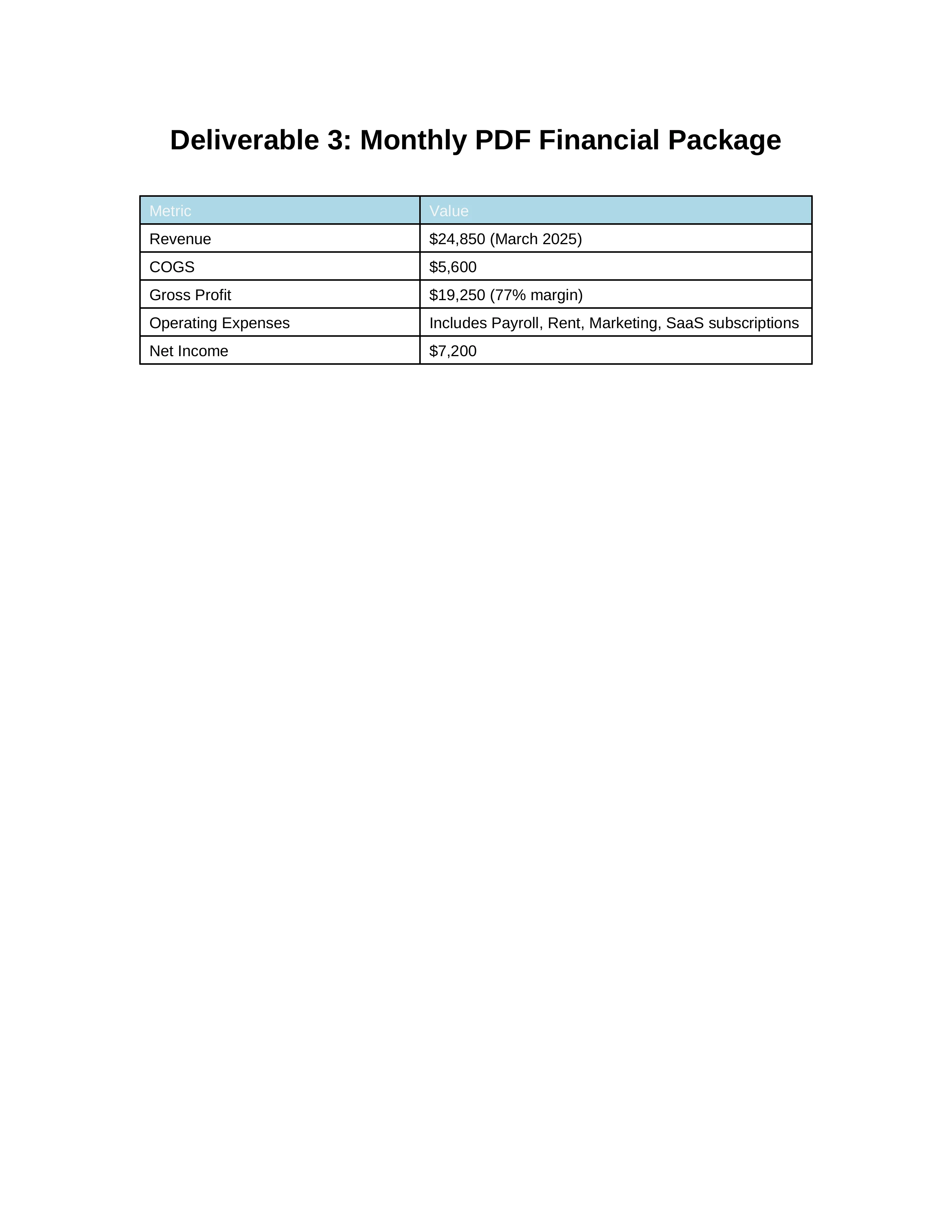 With reconciled statements and accurate reporting, the client could monitor cash flow, track KPIs, and make informed business decisions with confidence