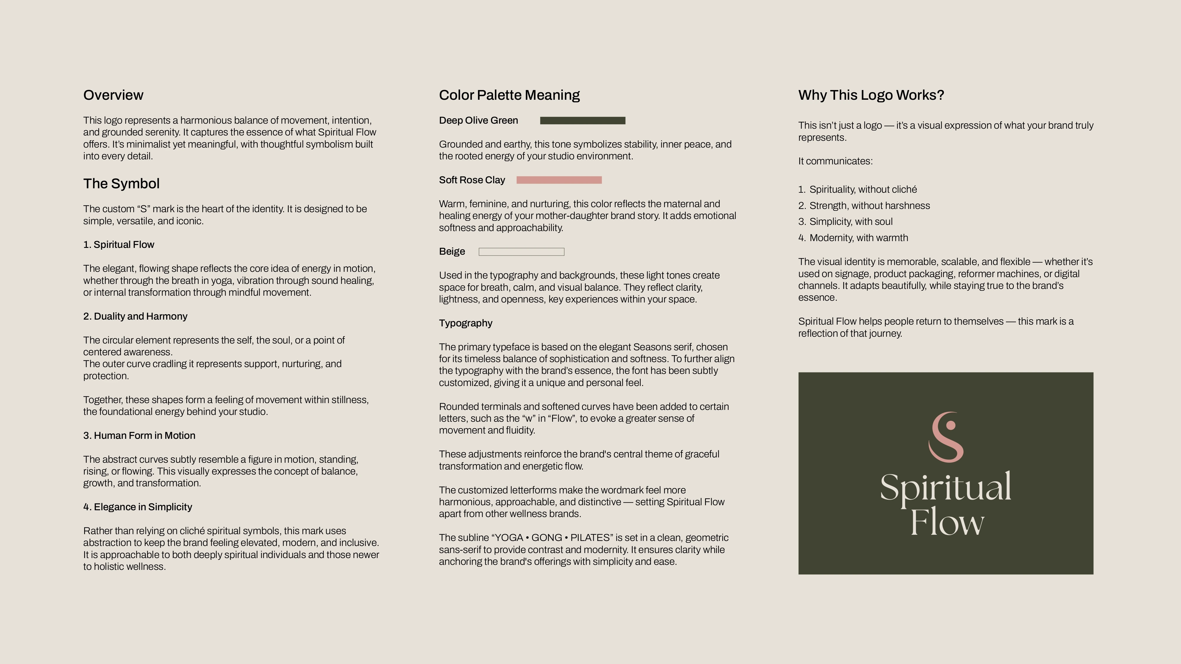 Minimal branding for Spiritual Flow that feels warm, balanced, and premium, built to work across studio signage, social content, and wellness touchpoints.