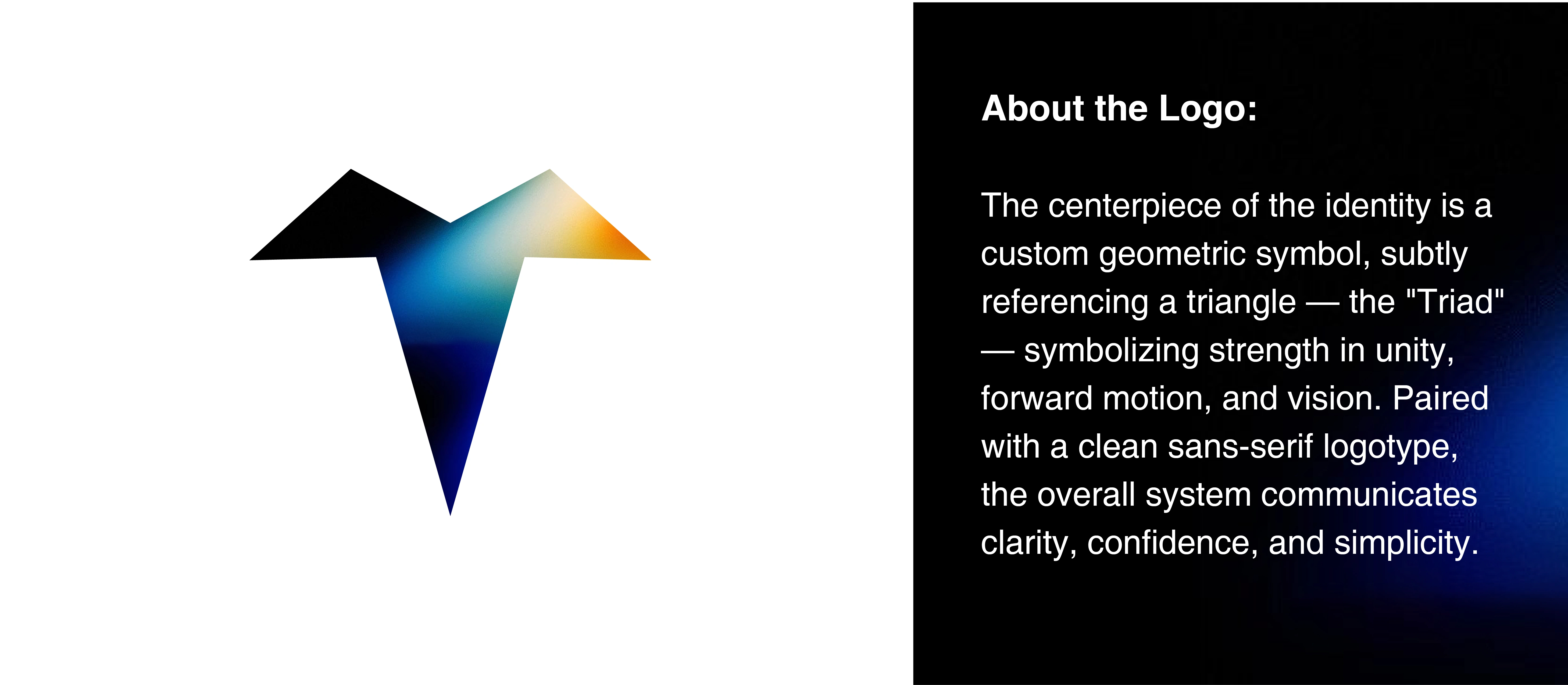 Triad™ is a modern, tech-forward brand that needed a bold yet minimal visual identity. This logo was crafted to reflect direction, momentum, and balance, aligning with the brand's mission to bring innovative solutions through unified strategy and structure.