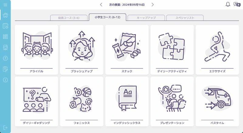 The day's lessons in the order they should be delivered. Clicking on a card reveals the plan/resources for that lesson.