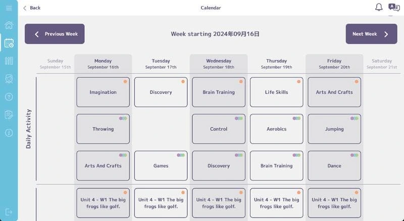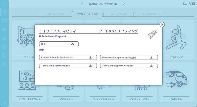 Lesson calendar view, clicking a lesson reveals the plan and resources as above.