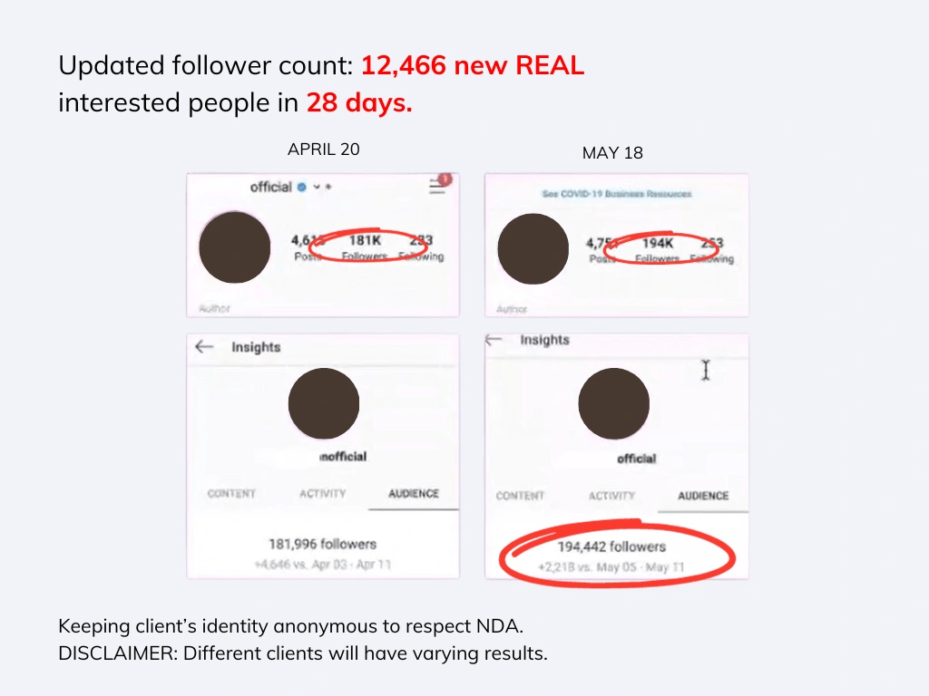 As the SMM of these clients, I ensure that their social media reached REAL audiences and grow the community by implementing our SIGNATURE SOCIAL MEDIA STRATEGY