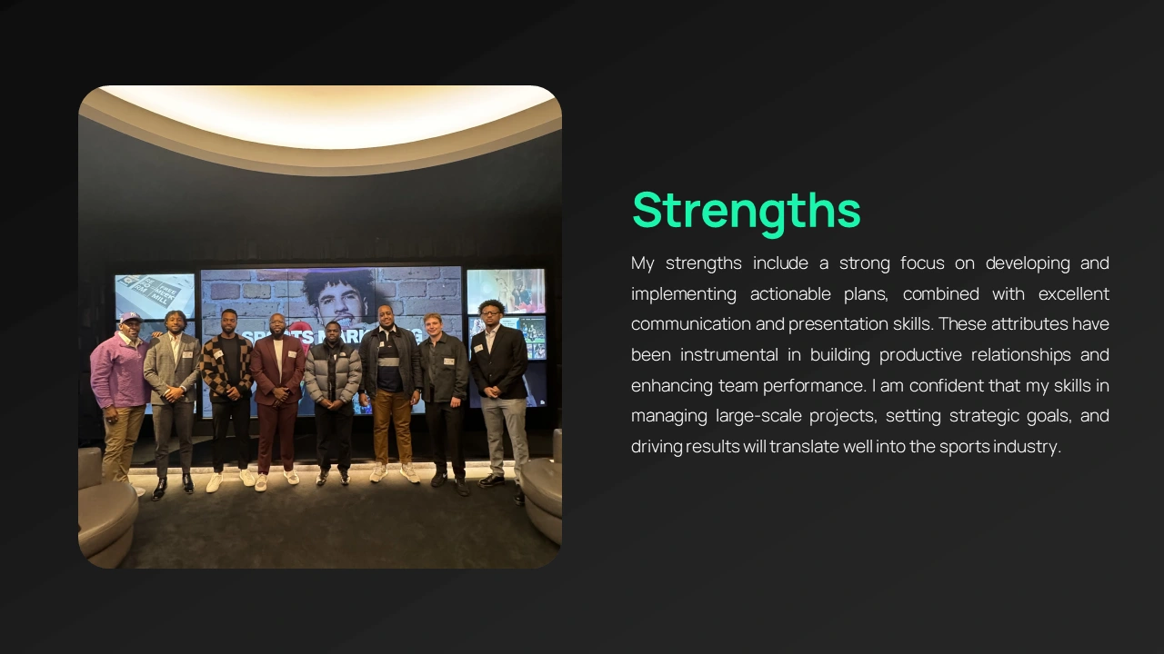 This project involved creating a high-impact personal profile presentation in PowerPoint, designed to showcase professional expertise, achievements, and career highlights in a clear and visually compelling way. The goal was to transform standard profile information into a polished, brand-focused presentation that can be used for portfolios, client pitches, job applications, and professional introductions.