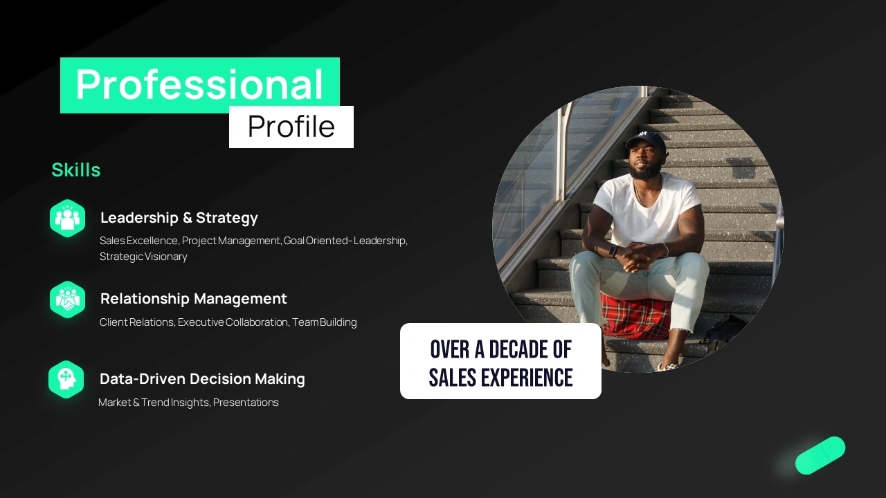 Modern Personal Profile Presentation Design to Showcase Skills and Experience