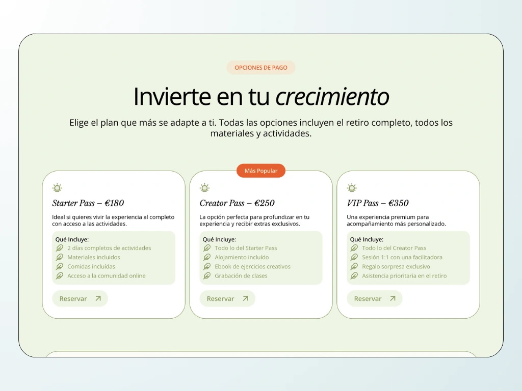 The retreat was created for creative women leaders and needed a site that felt calm, welcoming, and intentional. But it also needed to do real work: explain the experience clearly, support decision-making, and guide visitors toward booking.