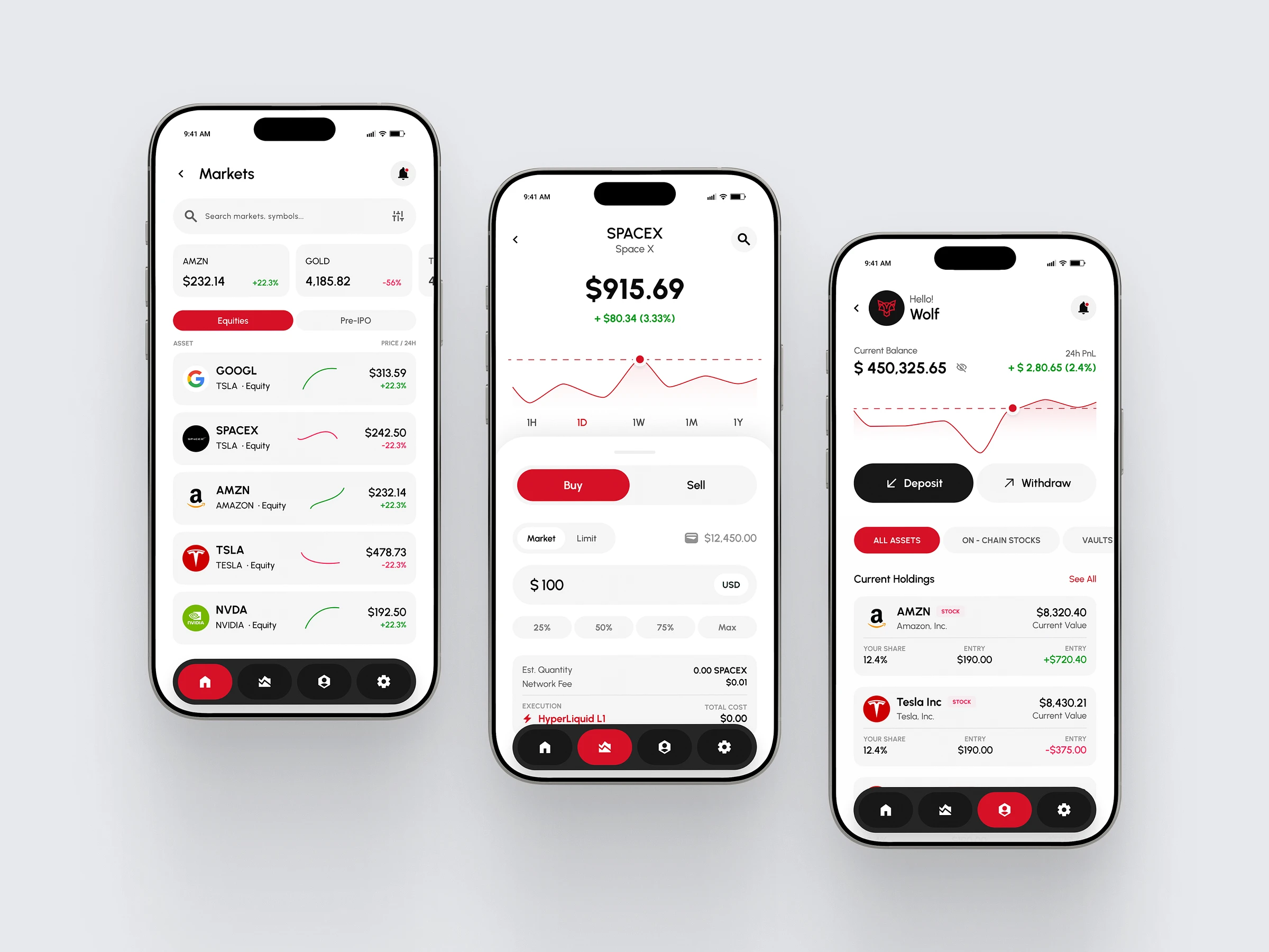 Wolves Trading App UI showcases a clean, modern interface built for fast and intuitive trading. It focuses on clarity and ease of use, allowing users to quickly track markets, execute trades, and monitor their portfolio. The layout is simple and well-structured, with clear visual cues for price changes and performance, making financial decisions feel more accessible and efficient.