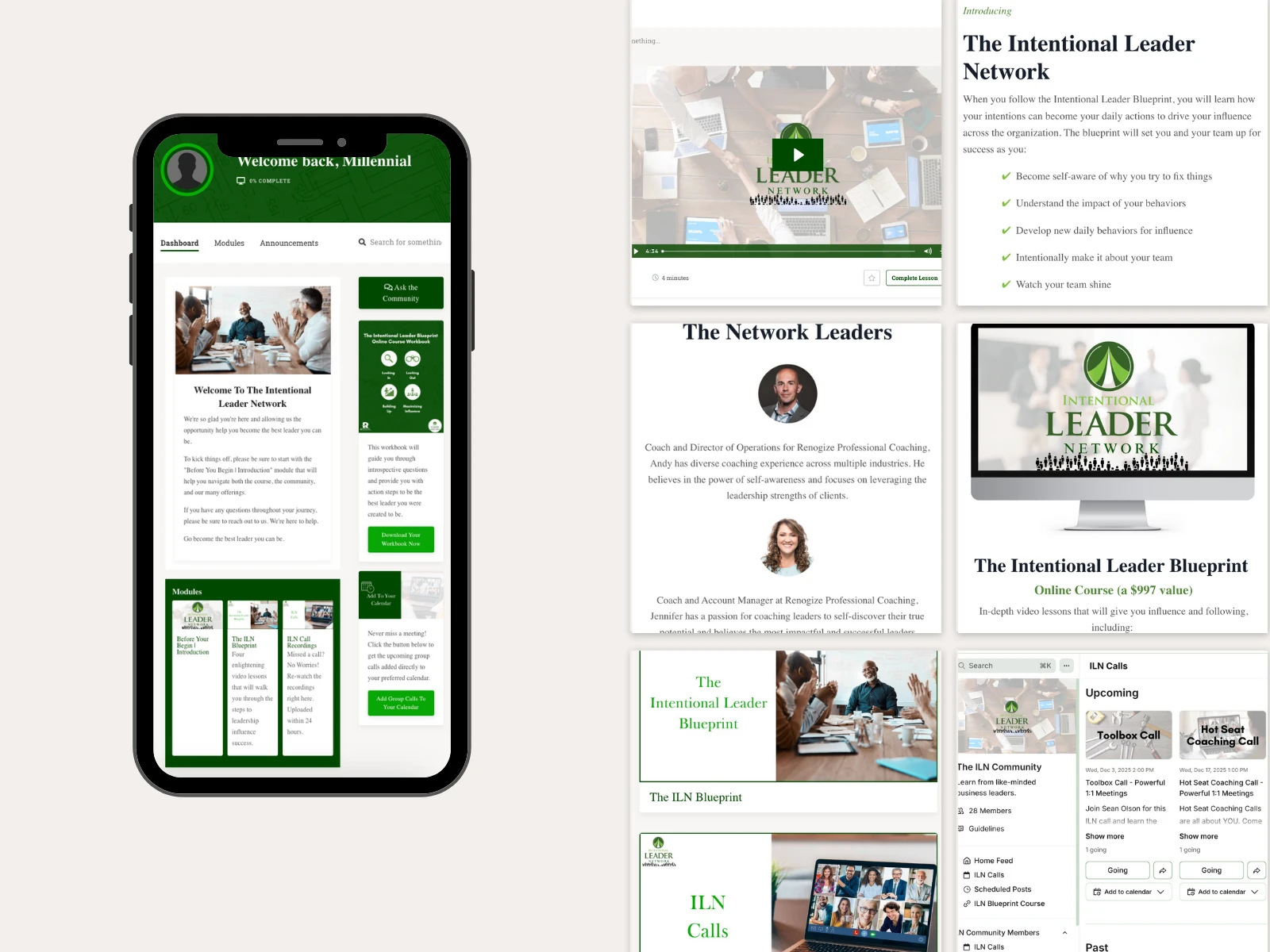 Sean Olson from the Intentional Leader Network needed support turning his group coaching vision into a streamlined online experience. He wanted a simple, professional course platform paired with a private community to host his leadership training and ongoing group coaching program.