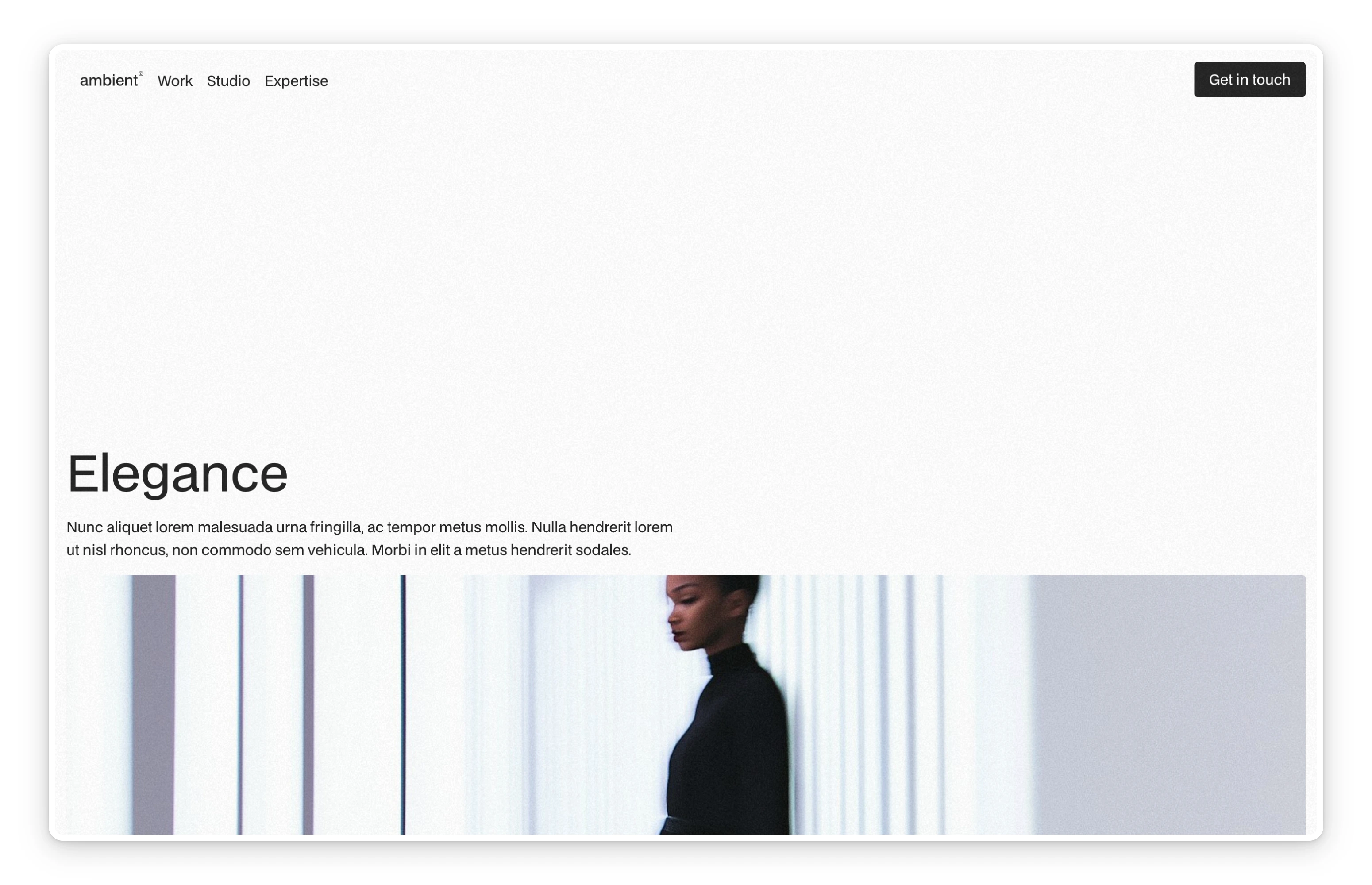 Ambient is a Webflow project designed for creative agencies, freelancers, and consultants who want a refined and understated online presence. Its minimalist, modern design system and flexible structure create a professional foundation to showcase work, present services, and communicate expertise with confidence.