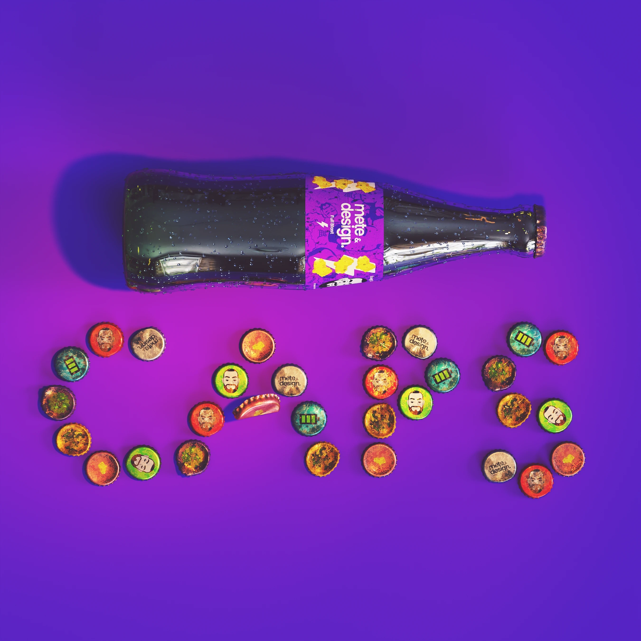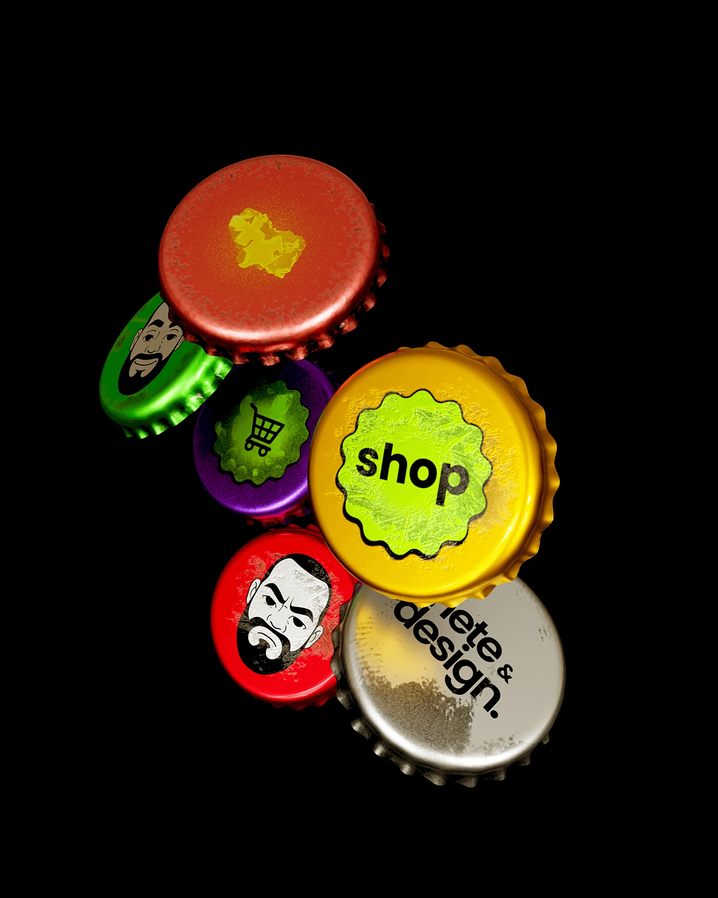 After a long break (and while down sick), I decided to get back into the flow by modeling bottle caps with my brand icons and colors.