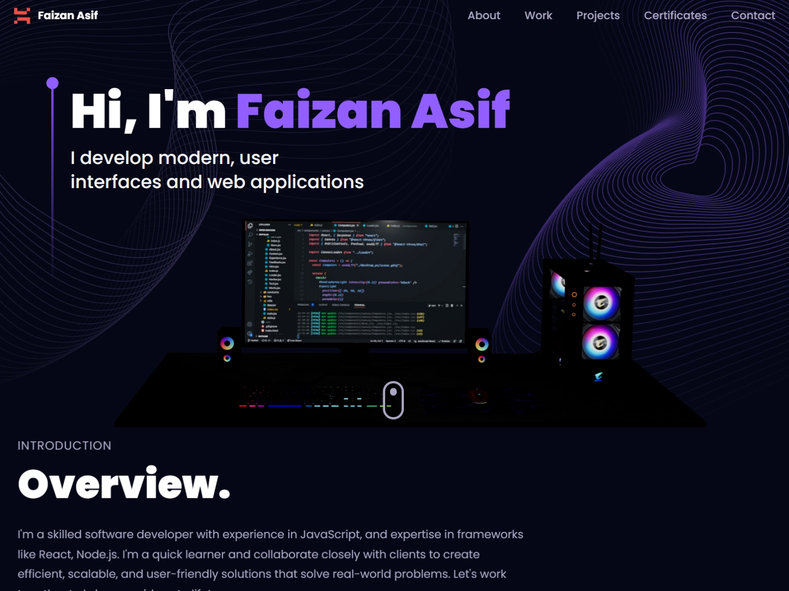 A modern, interactive my portfolio website built with the MERN stack (MongoDB, Express.js, React.js, Node.js) featuring animations and responsive design.