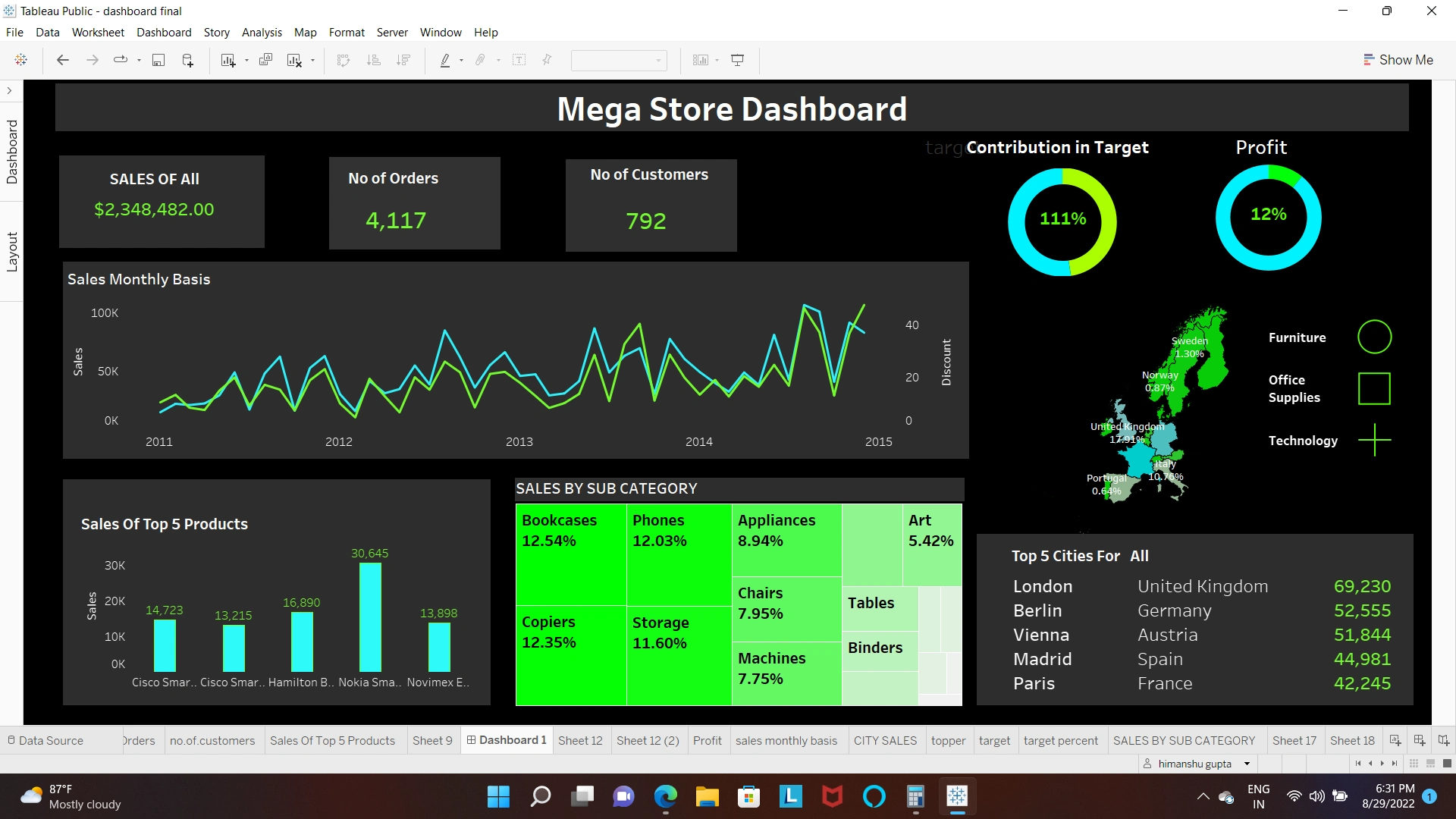 I built an interactive Sales Dashboard to track KPIs like revenue, targets vs. actuals, and performance by product, region, filterable and user-friendly.