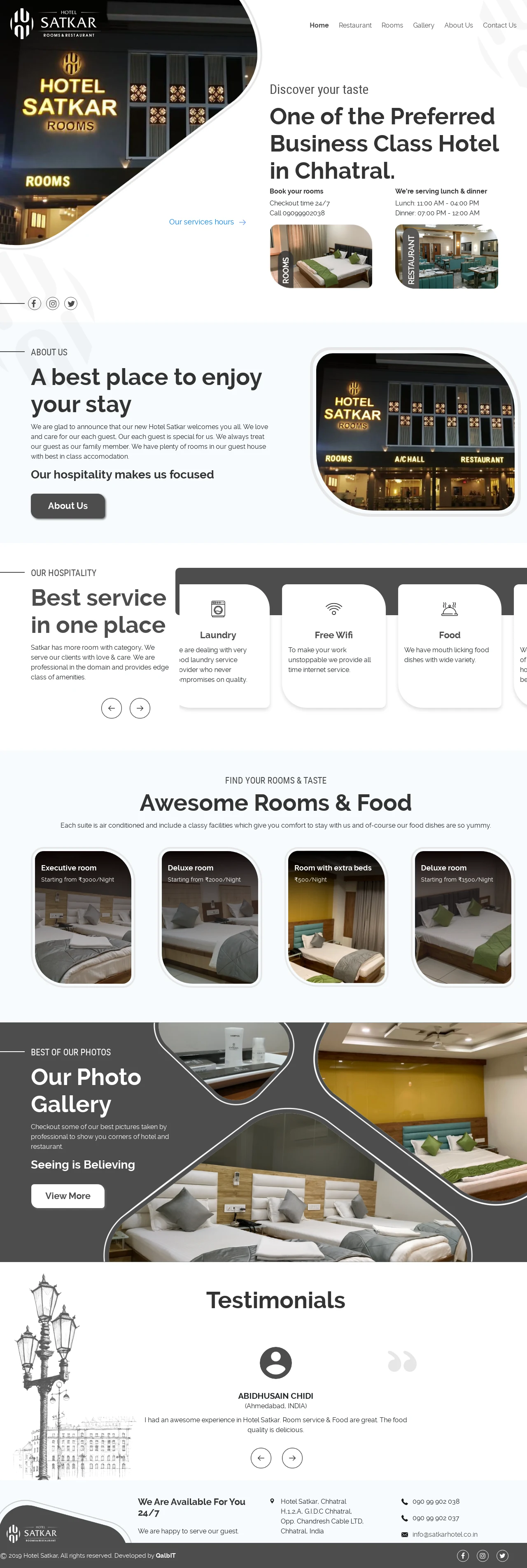 Hotel SatkarResponsive & mobile usability unclear: Doesn’t look like there is clear info whether the site is mobile-friendly or has responsive UI. Also no sample of dynamic interactions.