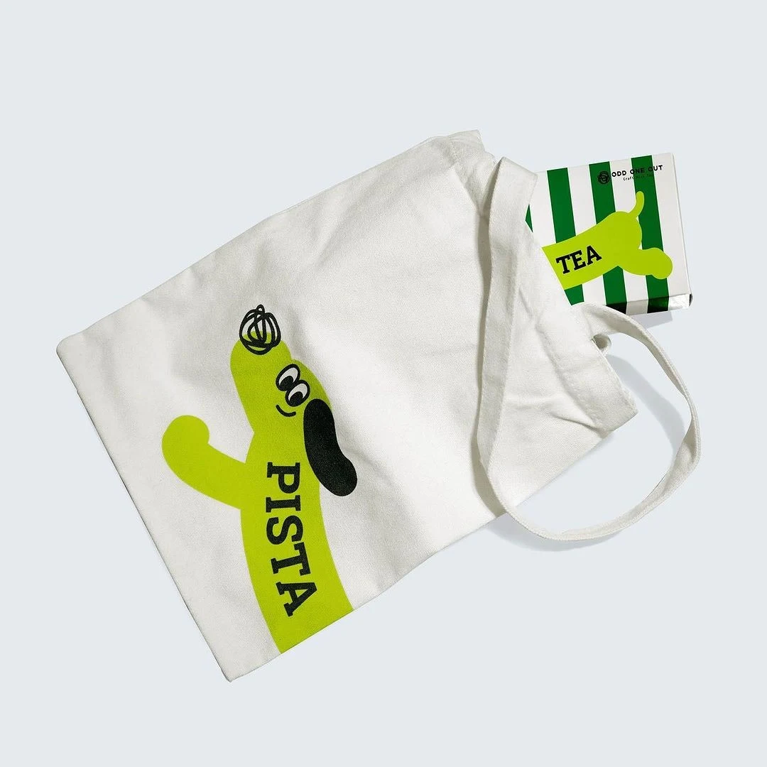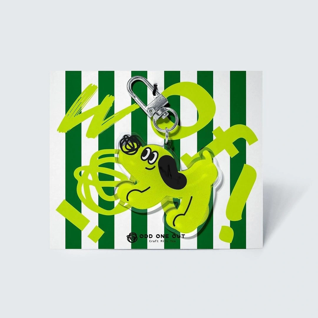 A fun identity refresh for Odd One Out, using a bold green mascot and simple graphics to make their tea and pistachio-matcha drinks feel joyful and memorable.