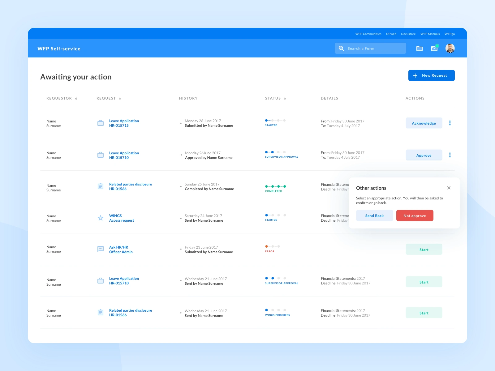 The WSS (WFP self-service) aim was to re-design one of the internal platforms of the UN World Food Programme international agency. The project was completed in team with Fabio My as a UX/Strategic Designer.