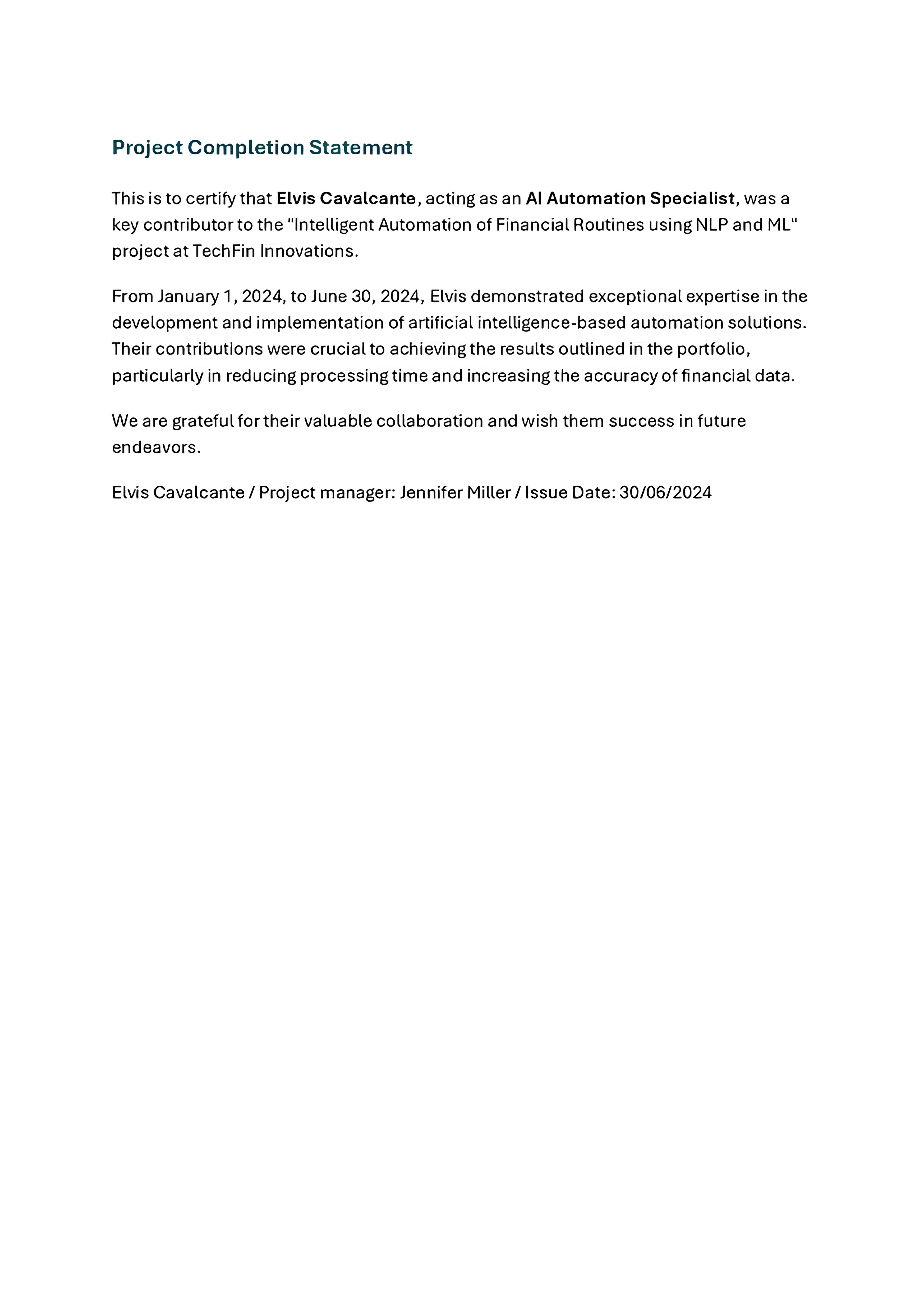 I have developed and implemented AI solutions to automate financial routines, using NLP and ML to optimize data processing and increase accuracy.