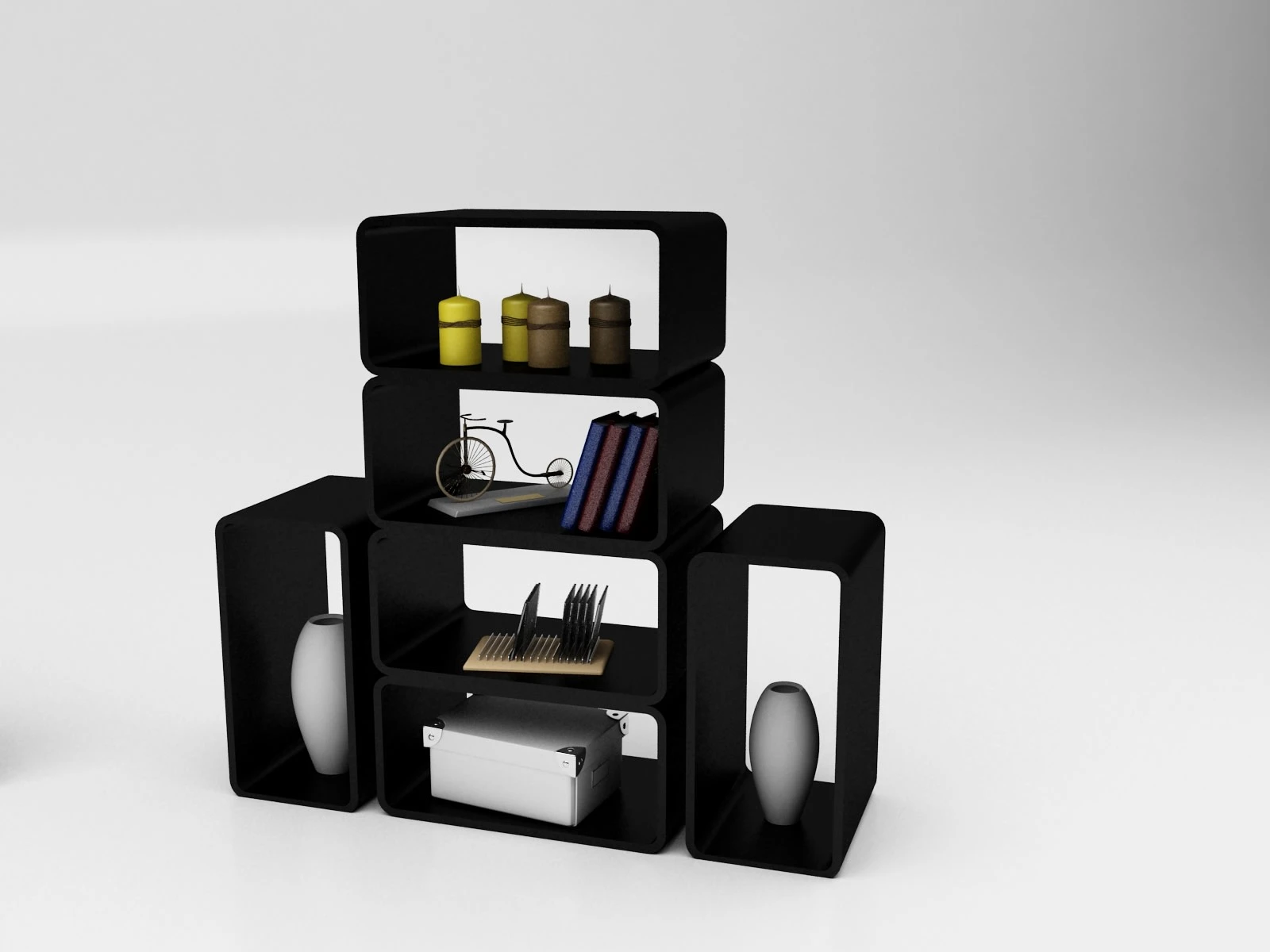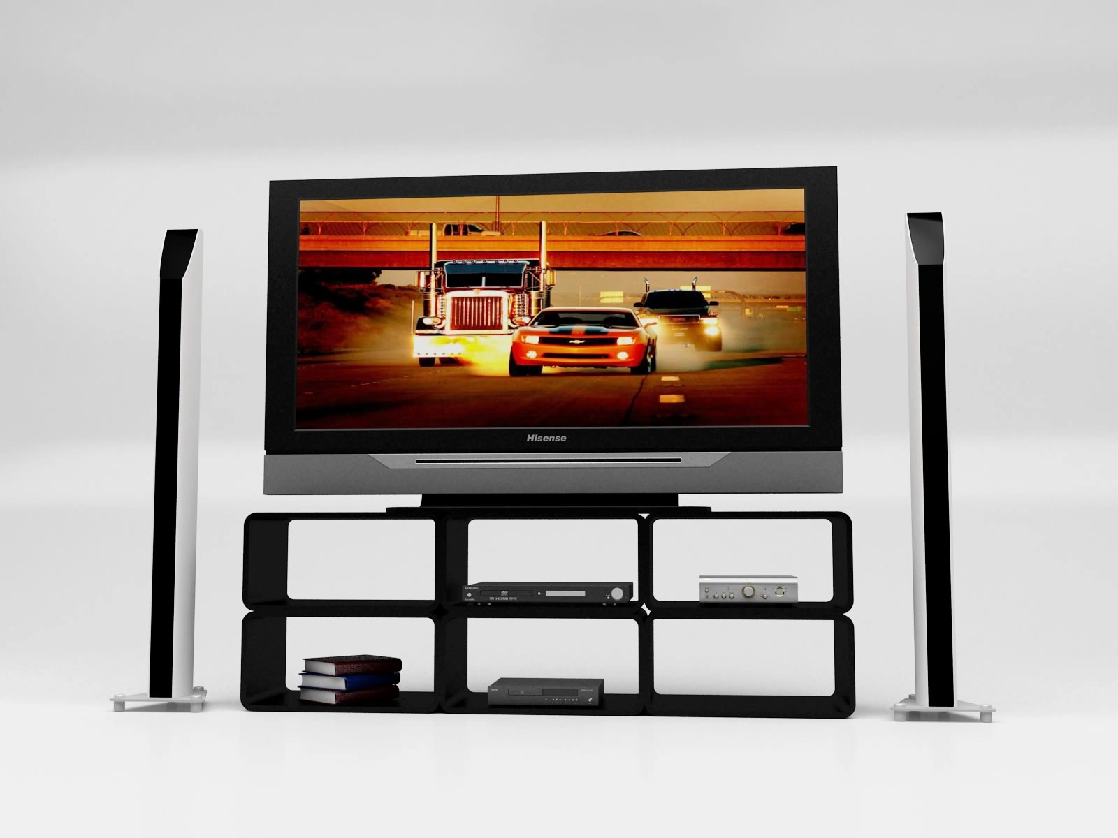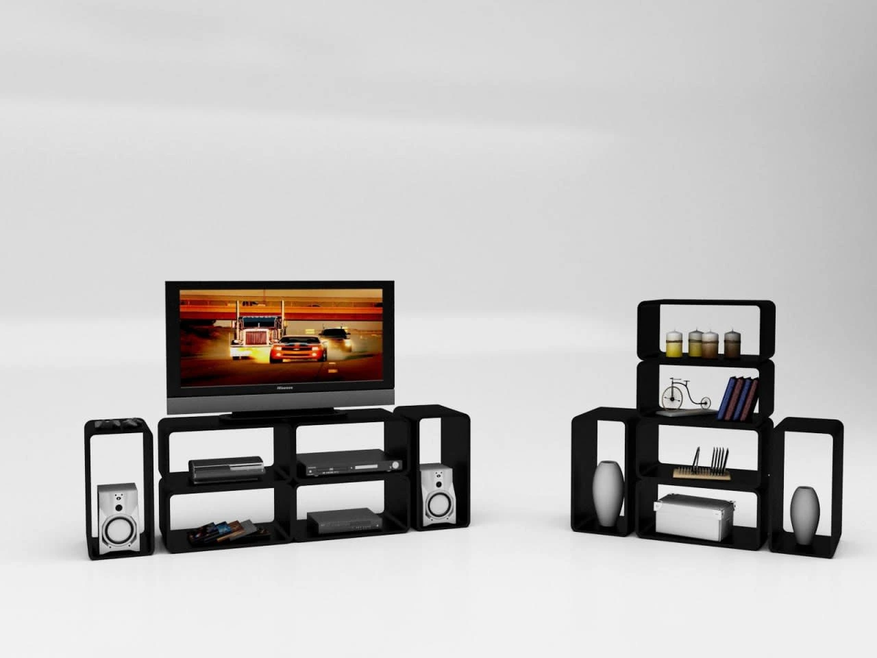 This TV stand was awarded in a local TV stand design competition. The concept is that user can buy each module and complete the TV stand with as many modules as he/she wants to. Not only it can be used as TV stand, but it can be used as a decorative stand or book shelf.