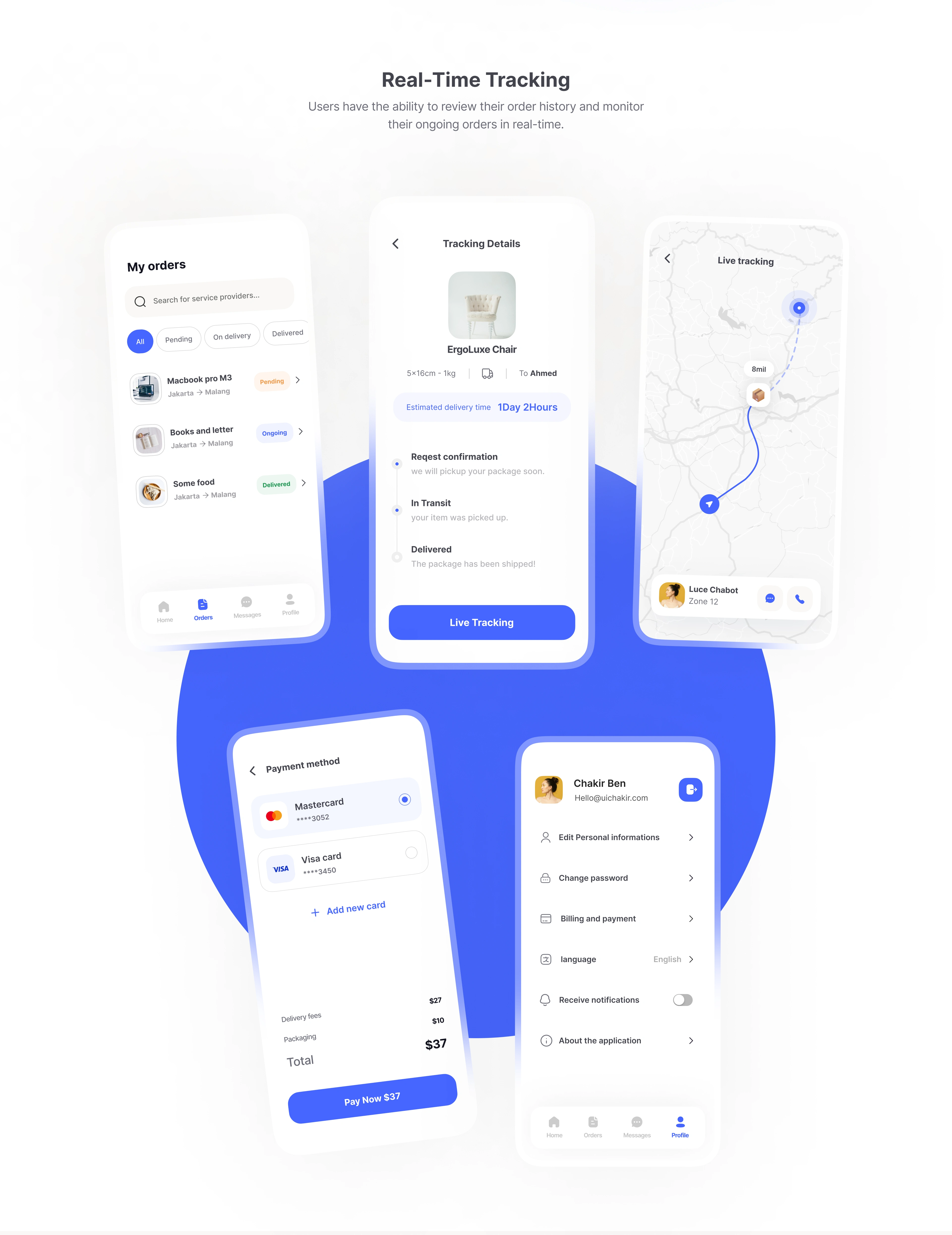 An app designed to let users order a delivery and track their pakage delivery in real time ...