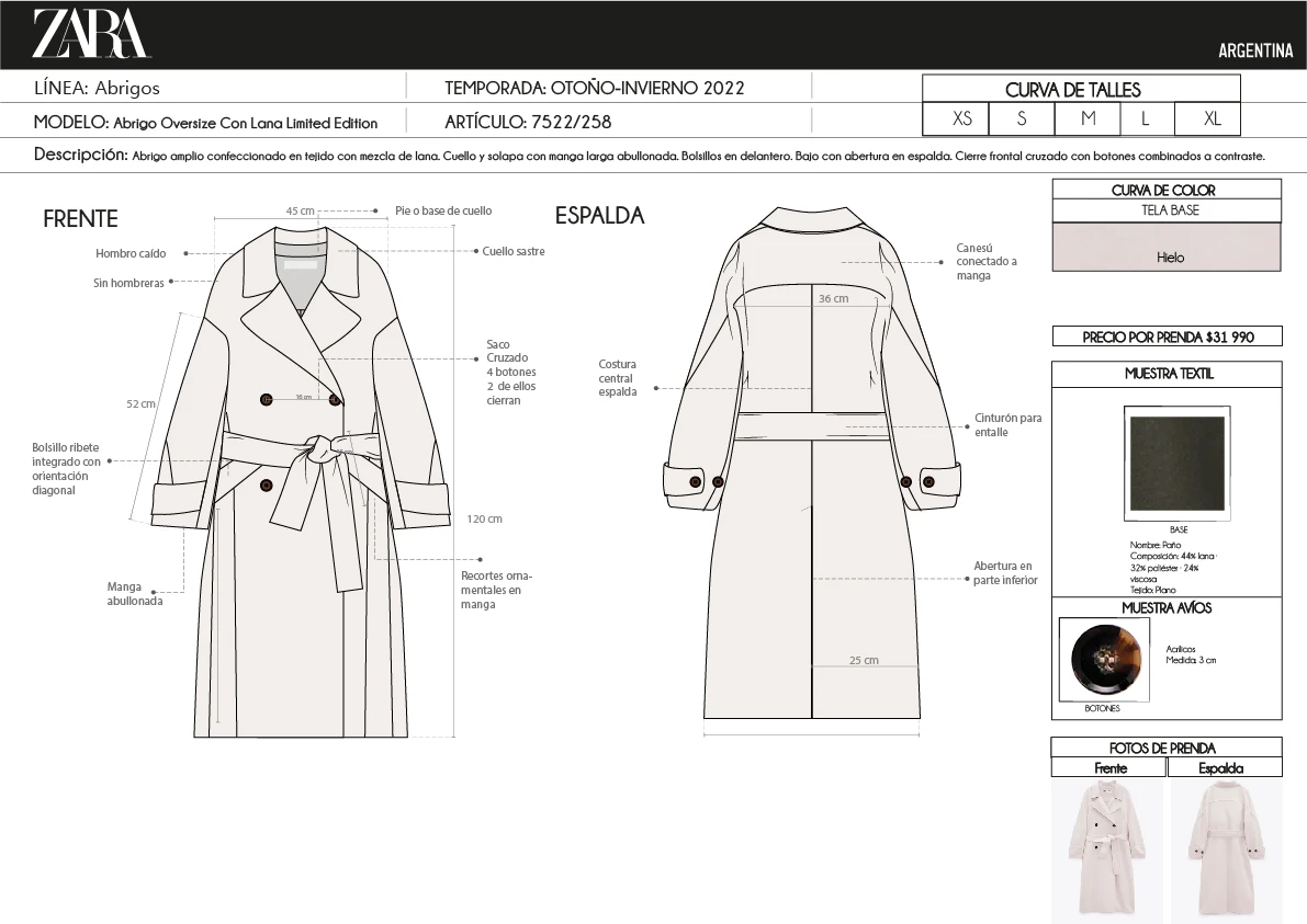 Recreated technical sheets for selected FW22 garments as part of professional practice. The focus was on detailed garment analysis, construction features, and translating observations into clear, production-ready documentation. This exercise highlights my ability to deconstruct existing designs and present them with precision and clarity in a technical format.