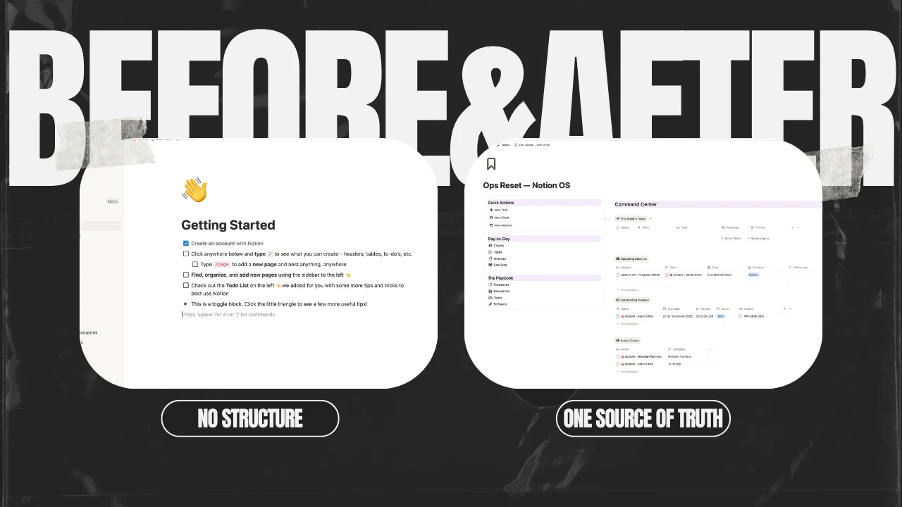 Took an executive coaching practice from founder-dependent to fully systemized. Notion OS, SOPs and async handoff built in 3 weeks.