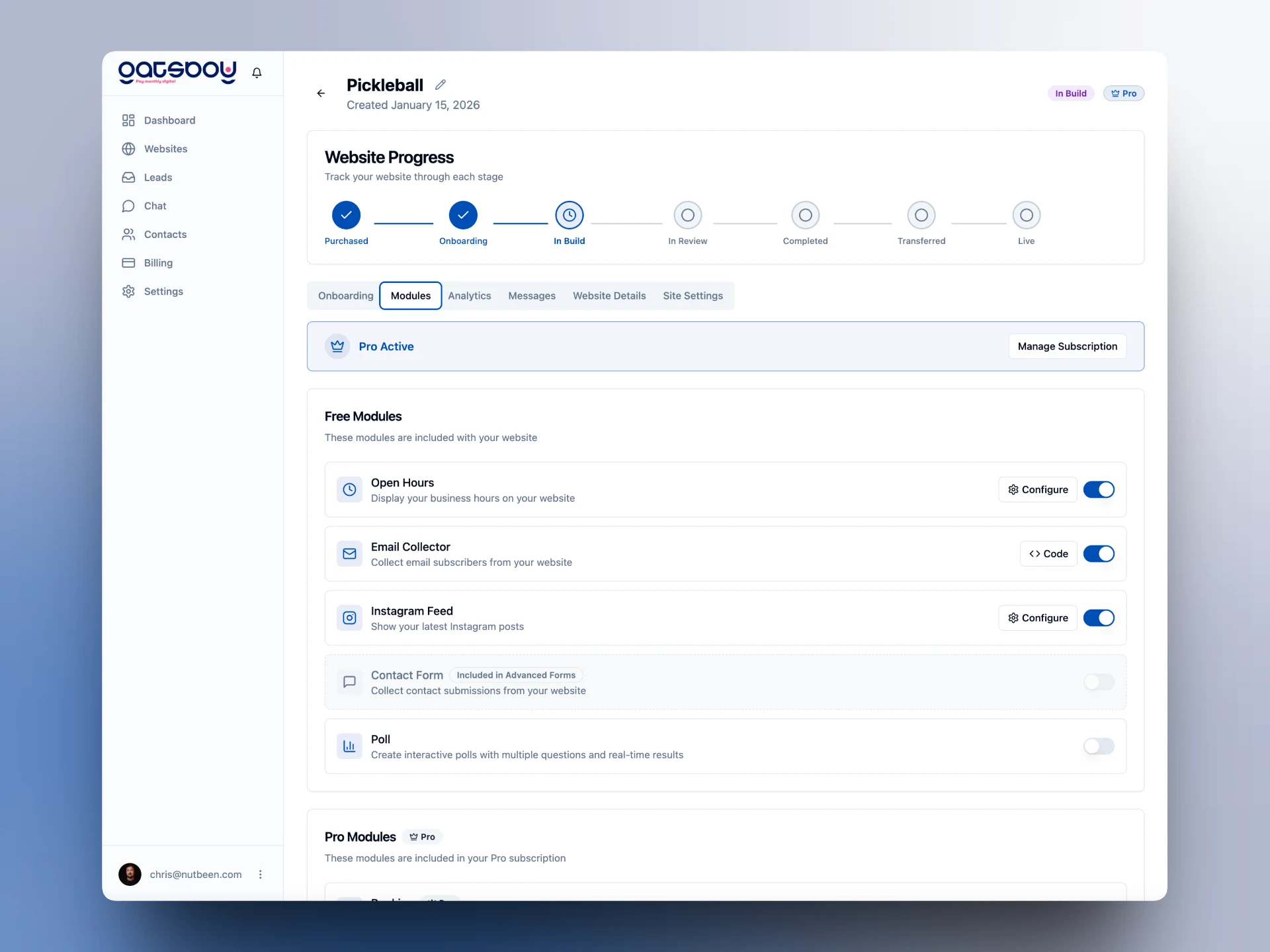 The new Gatsboy website was built using this software, benefiting from their own modules to manage leads, chats, engagement and more.