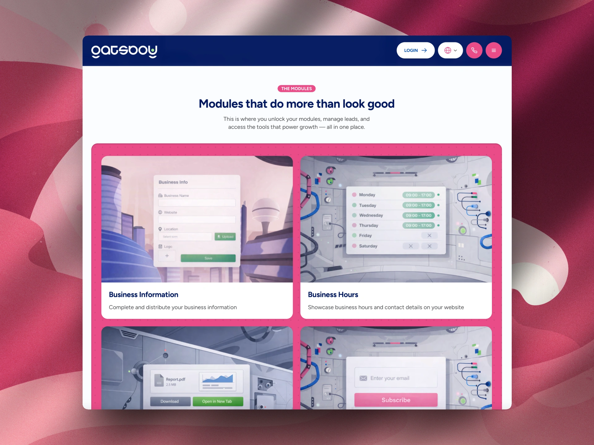 Gatsboy delivers Framer websites, powered by Gatsboy – offering an all-in-one dashboard and a library of smart modules to make it easy and affordable to manage their business online.