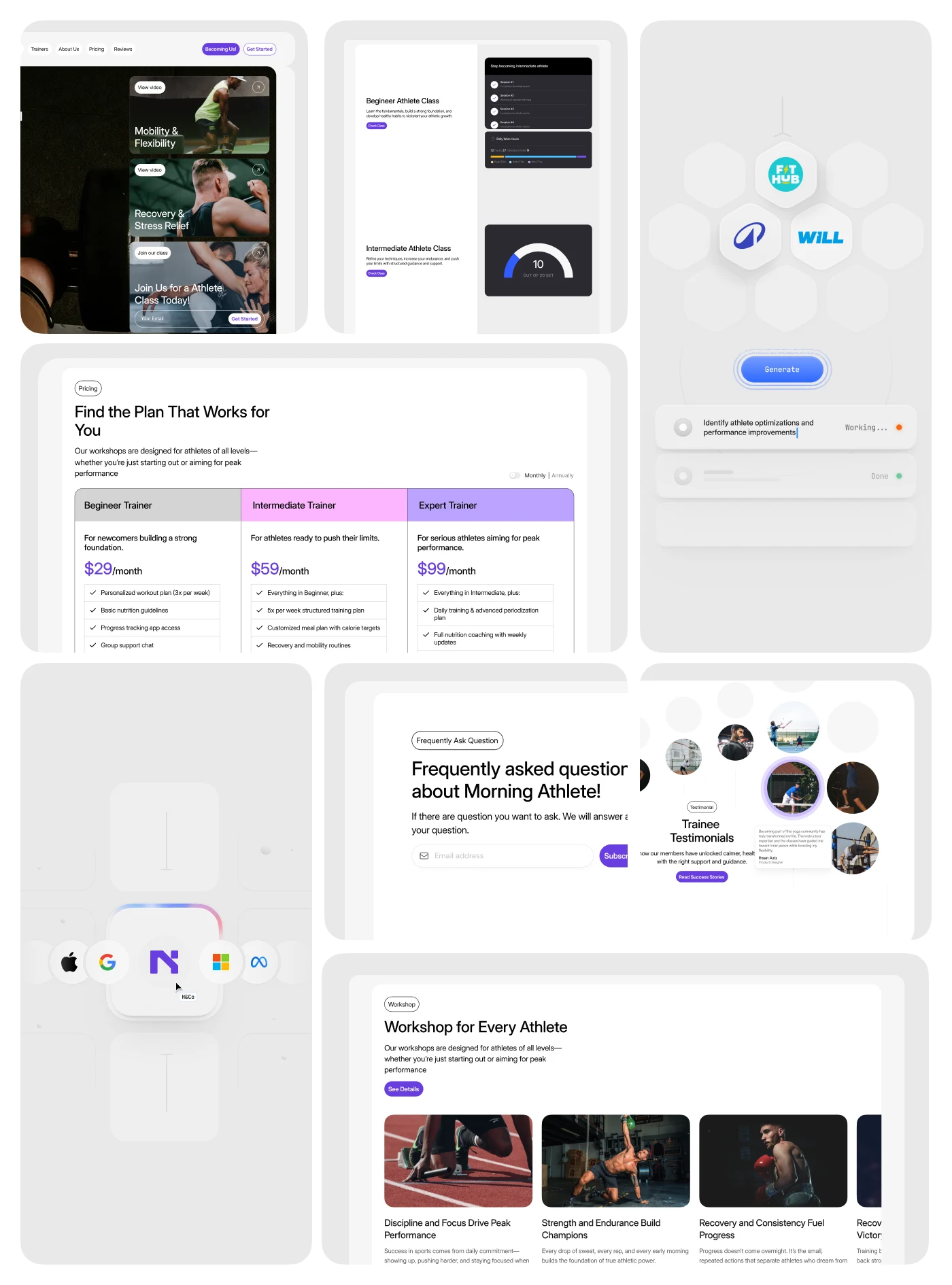 Morning Athlete redefined digital fitness with an inspiring design that boosted user retention by 40% and doubled class sign-ups within the first quarter.