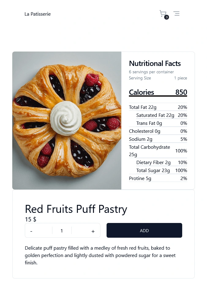 La Patisserie is a modern, full-featured e-commerce application for a bakery.