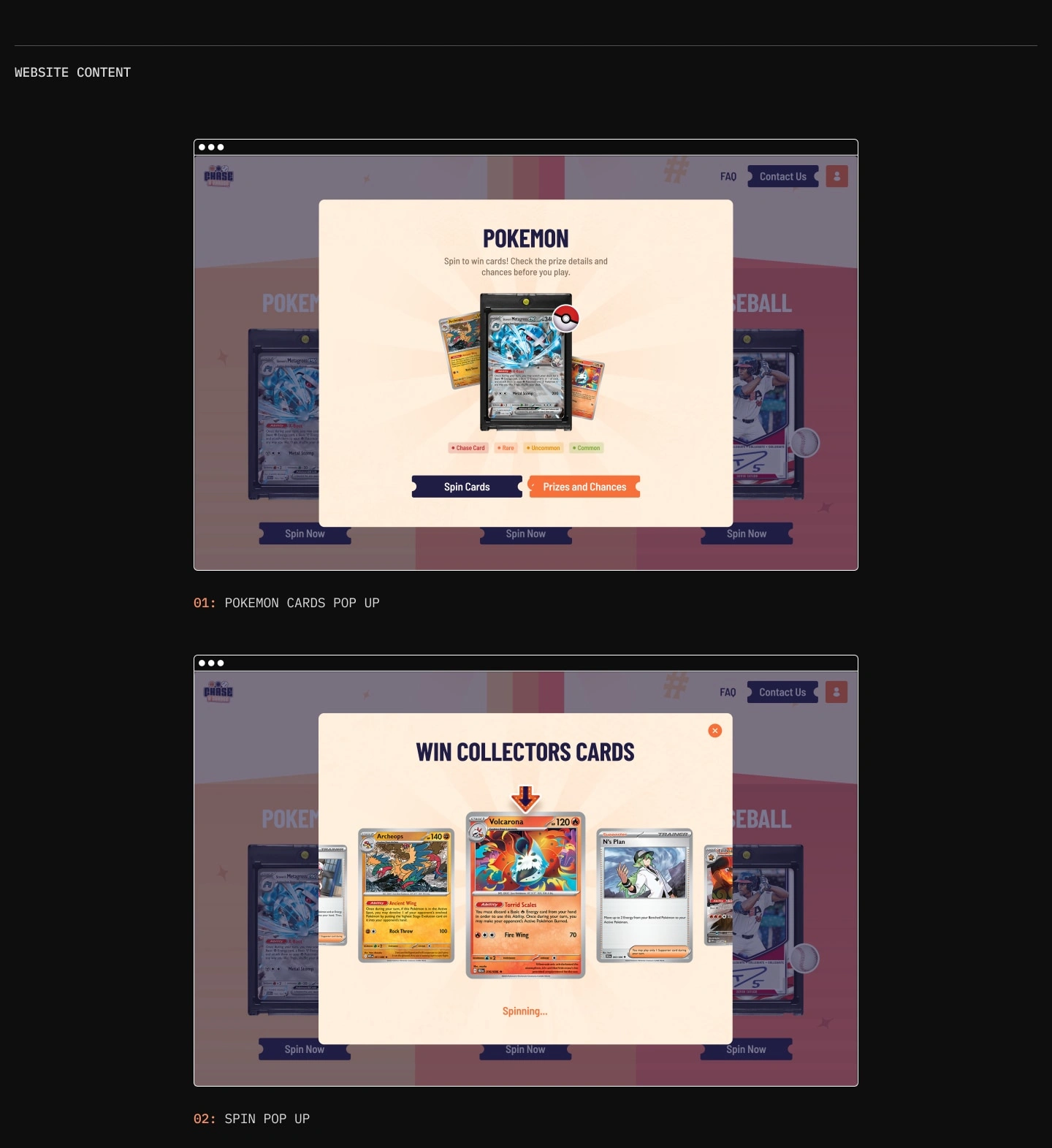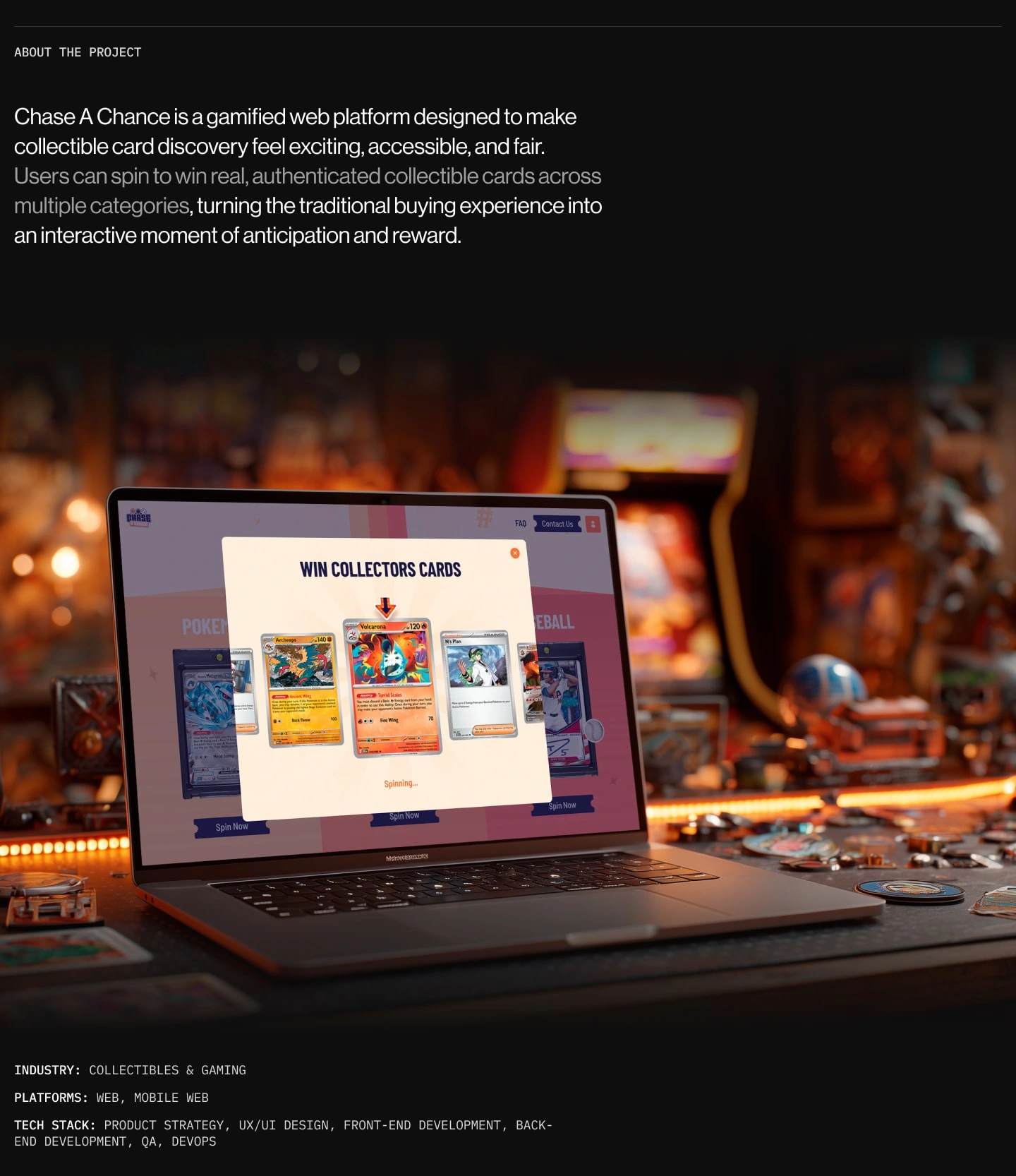 Web app where users spin a wheel to win collectible game cards