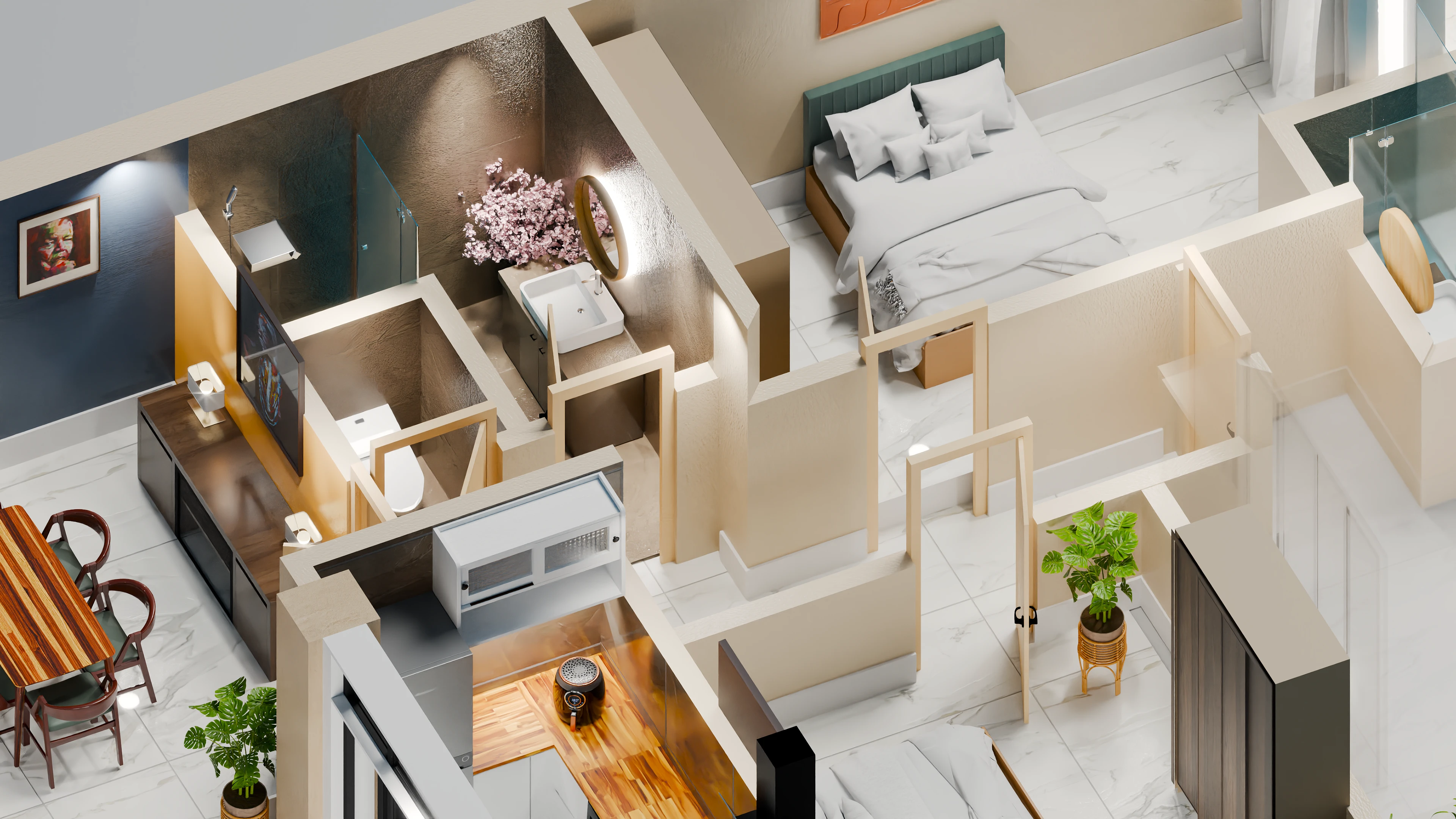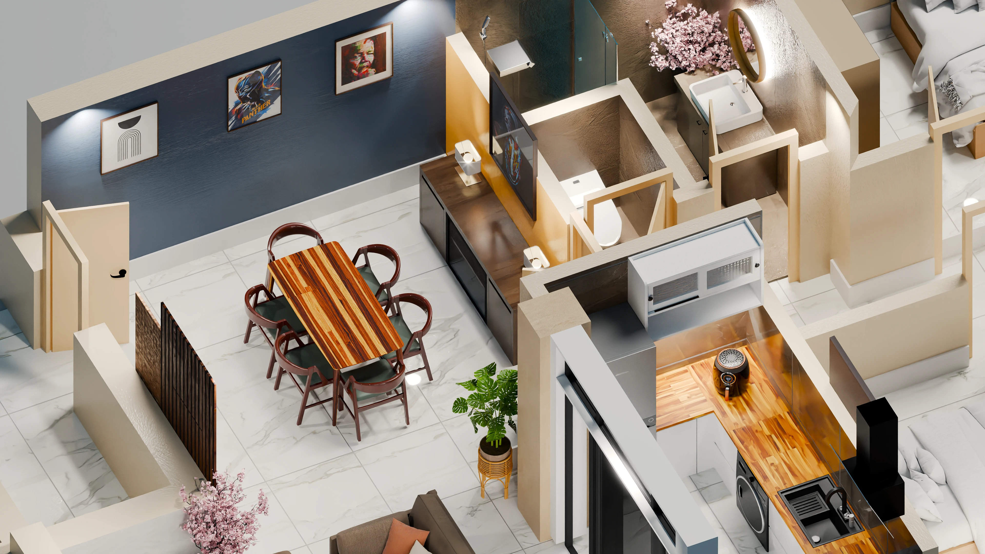 I worked closely with the client using their provided references and requirements, iterating on layout, materials, and lighting to refine the final result. The collaboration was smooth, with clear communication and structured revisions that helped achieve a polished and presentation-ready output. The final visualization effectively showcases spatial relationships and enhances the overall understanding of the interior layout.