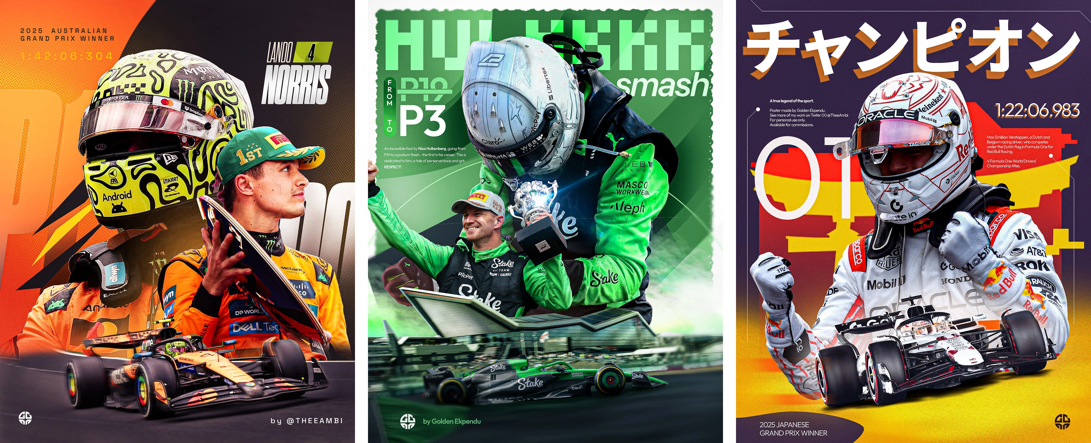 All designs were made in Adobe Photoshop, showcasing high energy moments from the race winners (and podium finishes). One of my favourite was making the design for Nico Hulkenburg after his fantastic run from P19 to P3!
