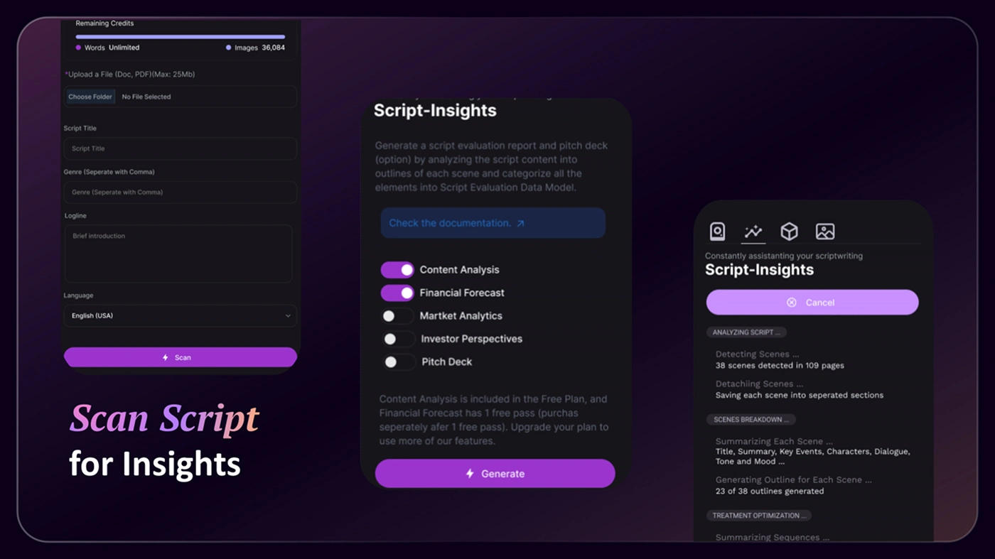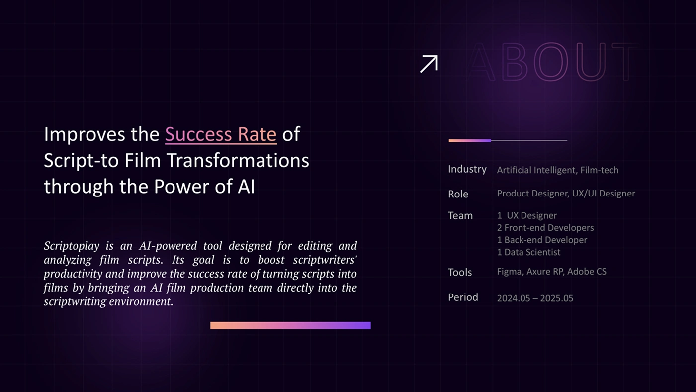 Scriptoplay is an AI-powered tool designed for generating, editing and analyzing film scripts that improve the success rate of script-to-film conversion.