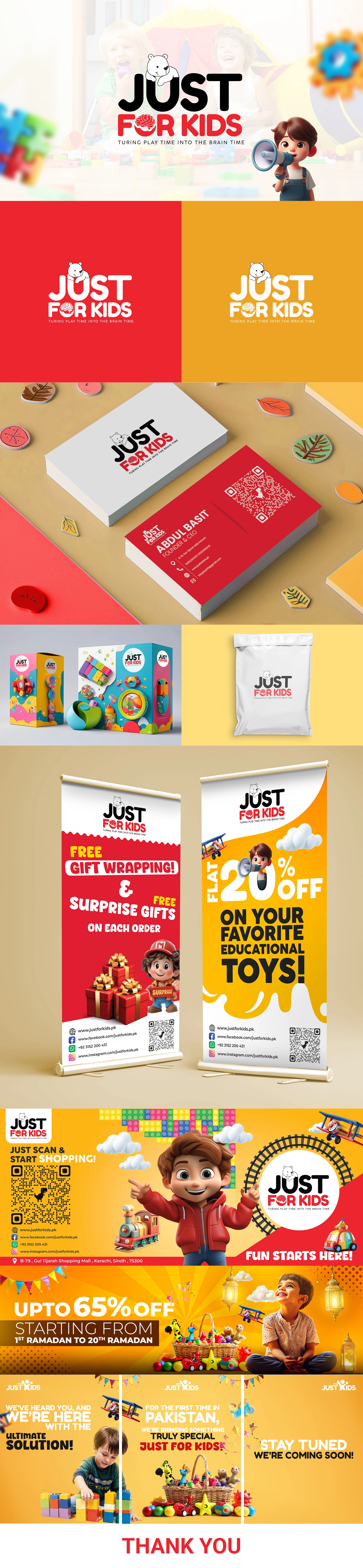 Just for Kids – Toy Brand Designed the full brand from scratch—logo, colors, and visuals. 🎉 Launched successfully with real customer orders.