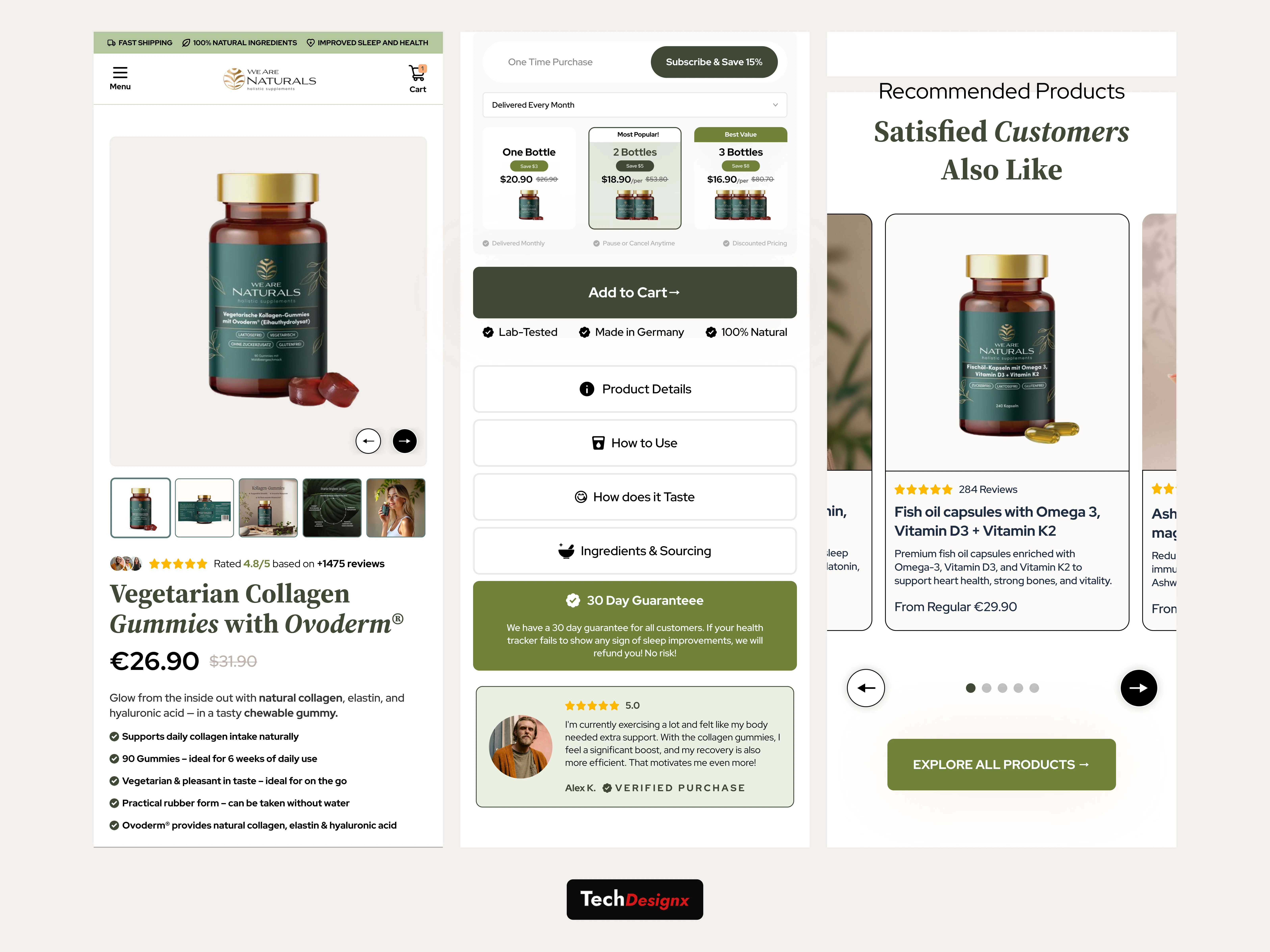 I developed Wearenaturals' eCommerce website using Figma and Replo, focusing on a clean, conversion-driven design that reflects the brand’s identity.