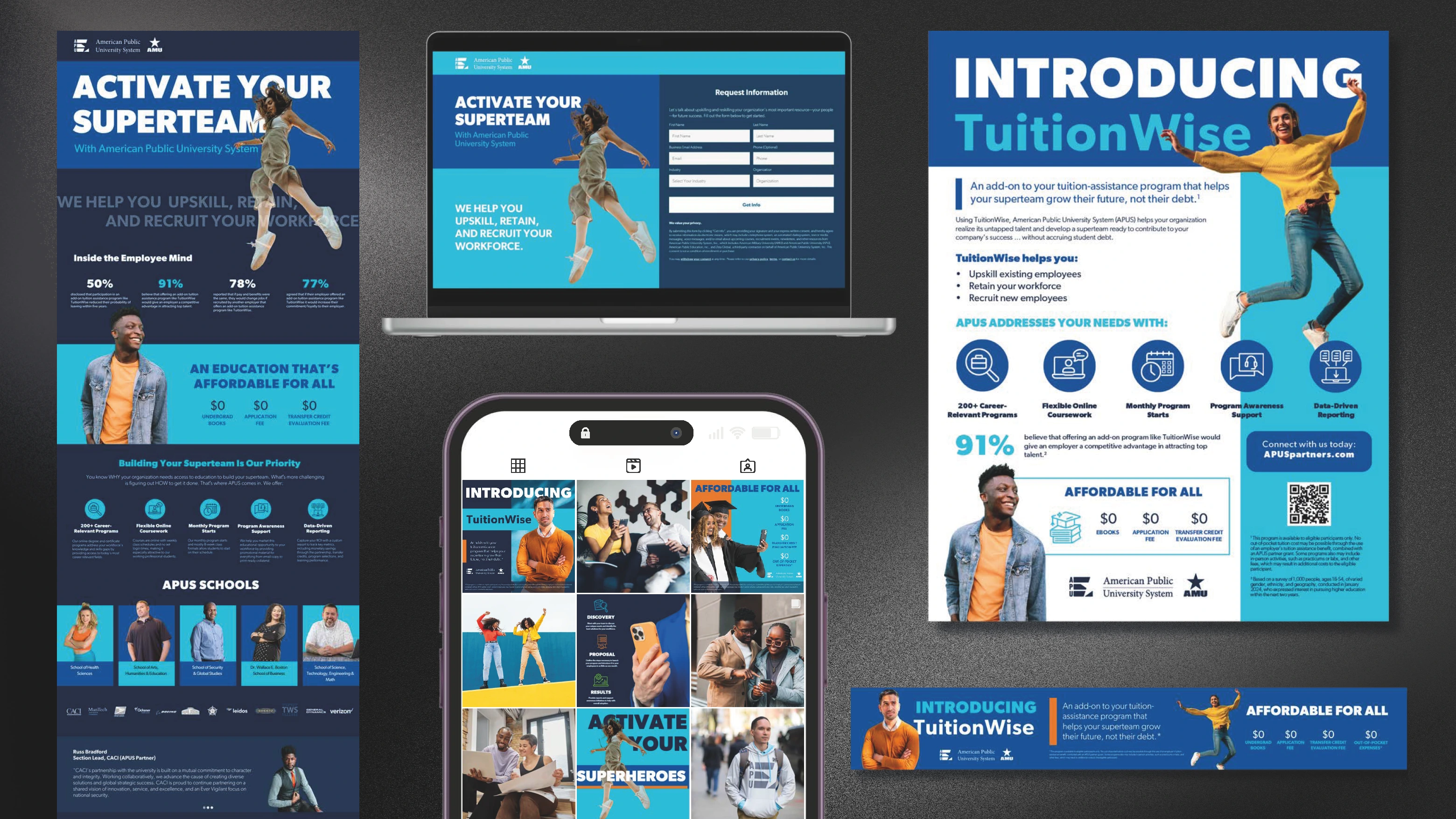 Concept and visual design for a B2B marketing campaign built around the “Superhero” idea — highlighting team empowerment and product benefits.
