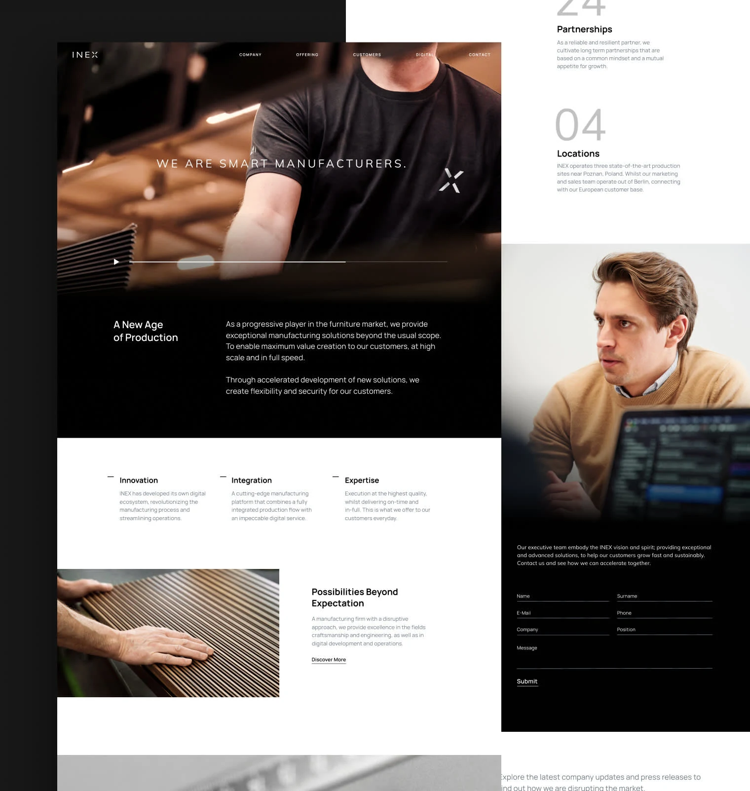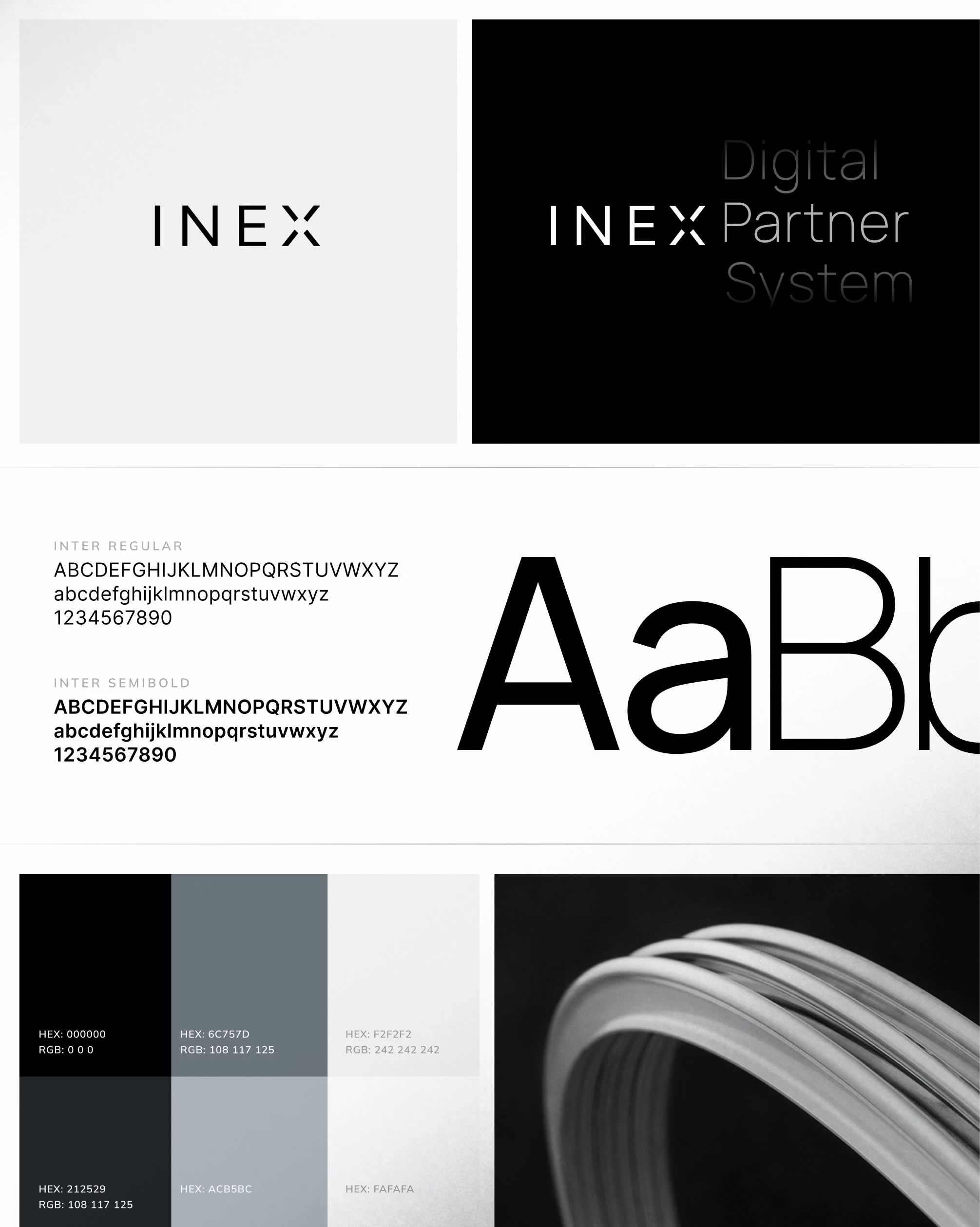Full brand identity suite and website redesign for INEX, a bespoke furniture manufacturer with a focusing on digital expertise.