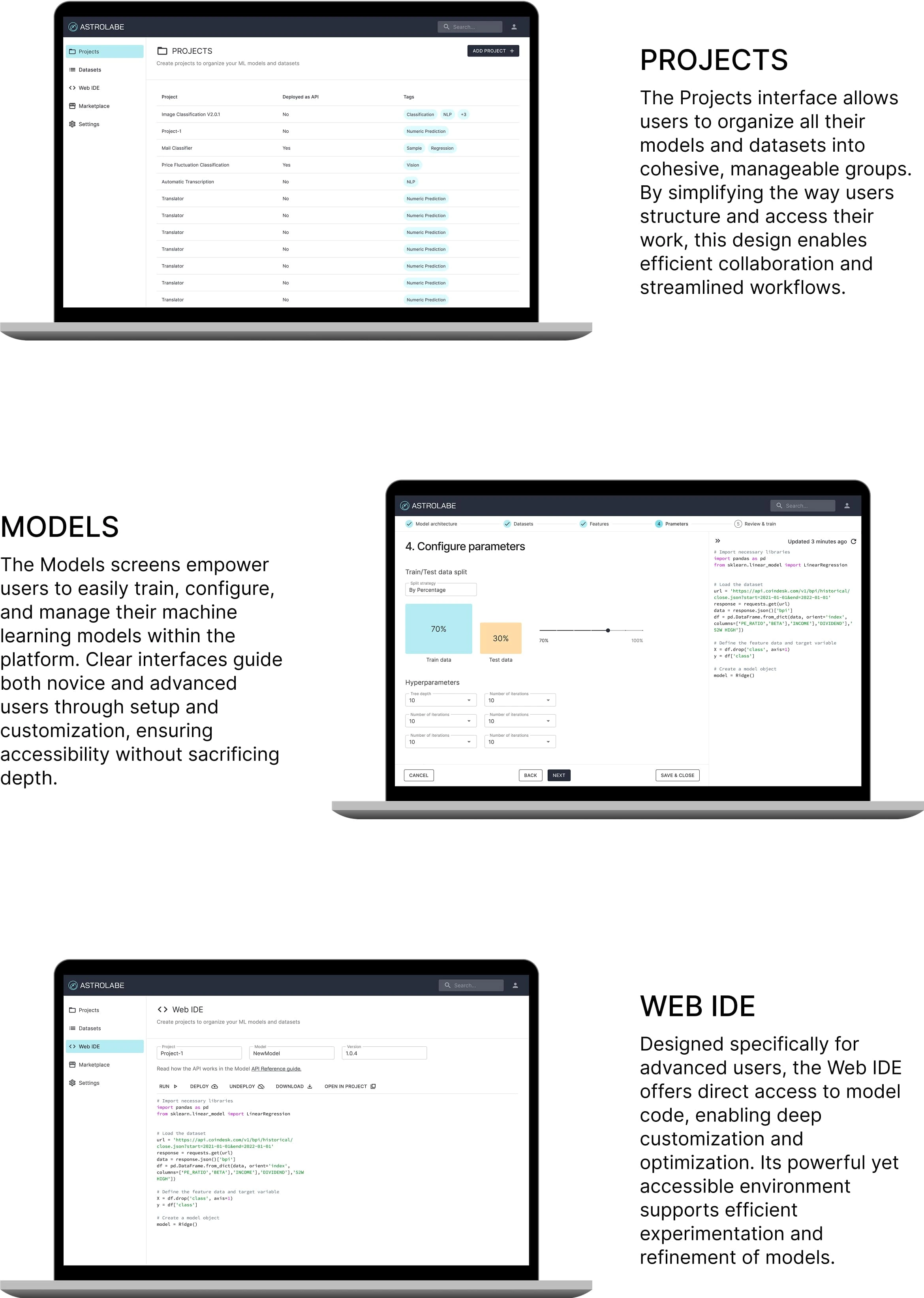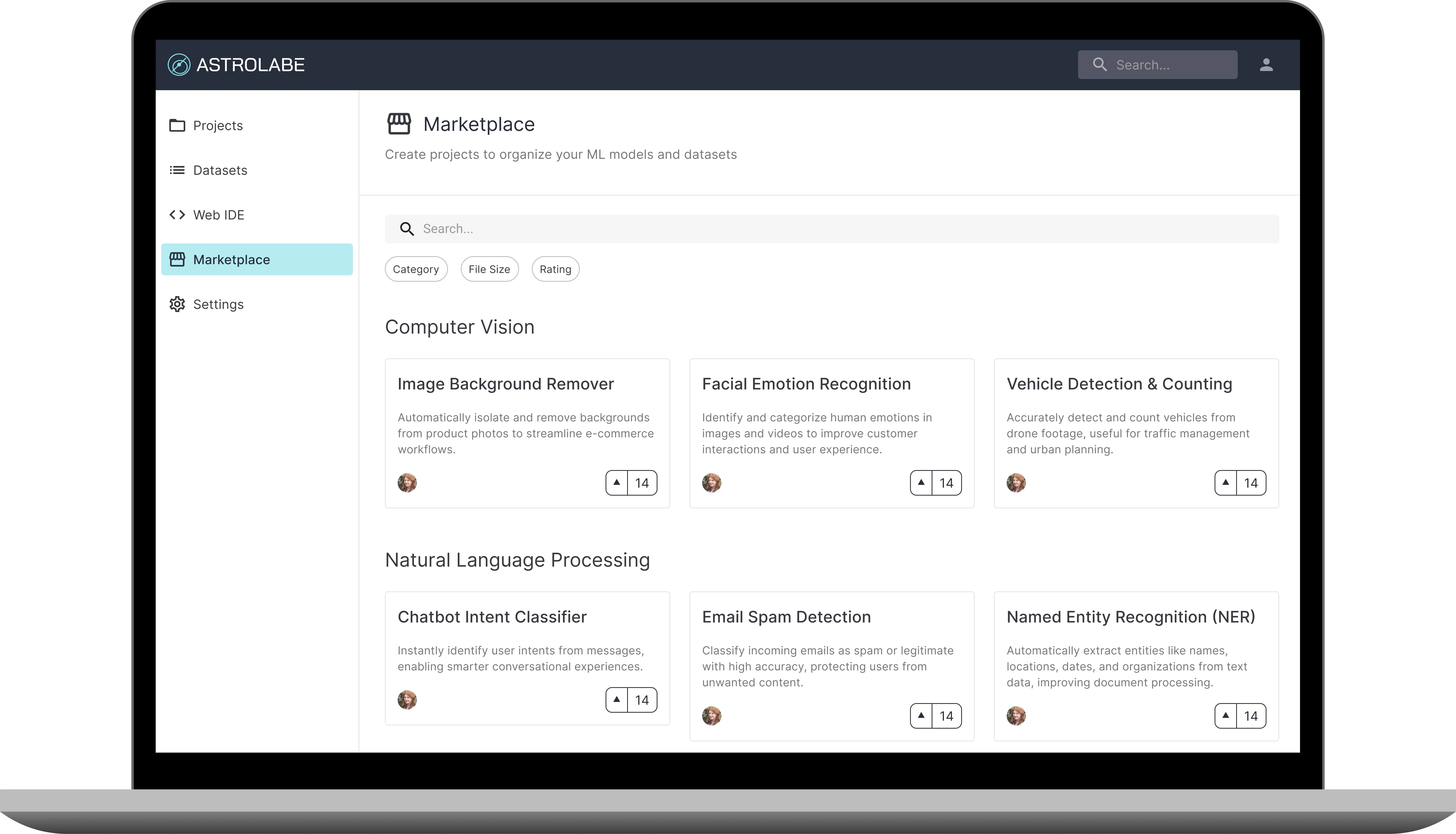 I collaborated closely with Astrolabe to shape their product strategy, identifying key market opportunities, monetization strategies, and essential functionalities. By deeply understanding user challenges such as the difficulty of finding quality datasets and navigating complex workflows, I developed a strategy focused on streamlining the user experience. This included establishing clear monetization pathways that benefit both model and dataset creators, alongside creating a marketplace and intuitive tools that empower users at every technical level.