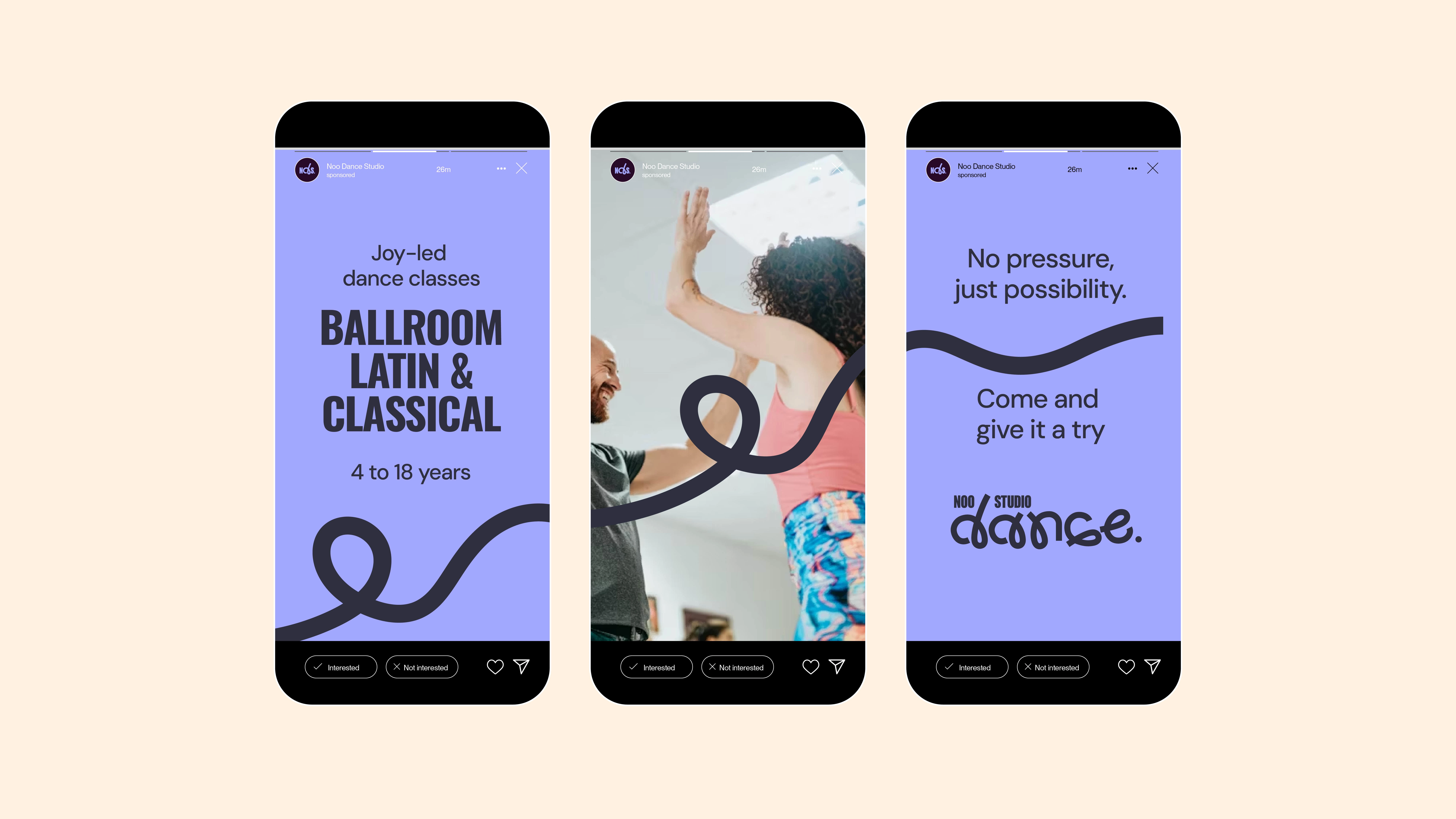 Create a brand identity for the Ballroom, Latin and Classical Noo Dance Studio that has the ethos of “everybody can dance”. It’s about seeing the dancer not the dance.