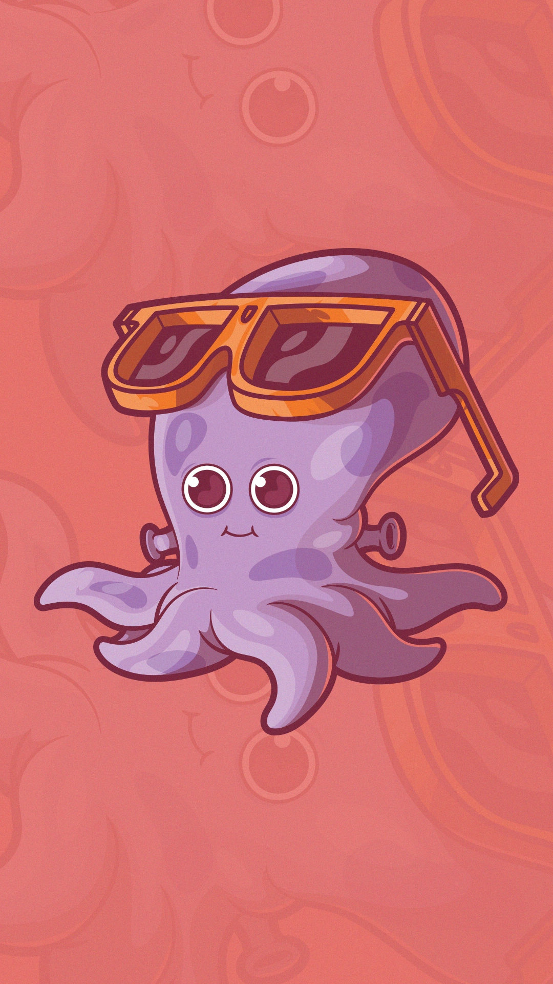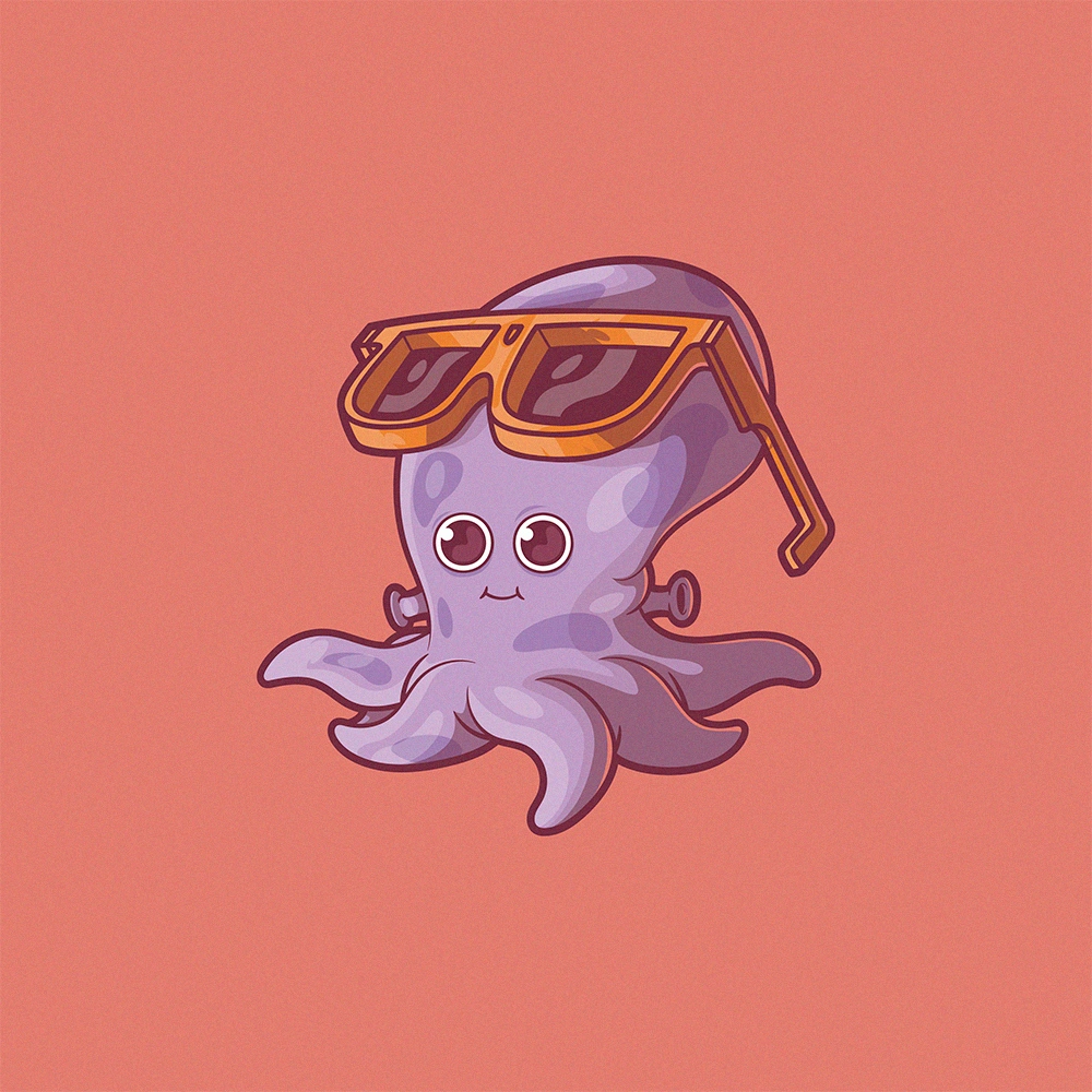 Cool Octopus Character with sunglasses vector illustration. Animal, mascot design concept.
