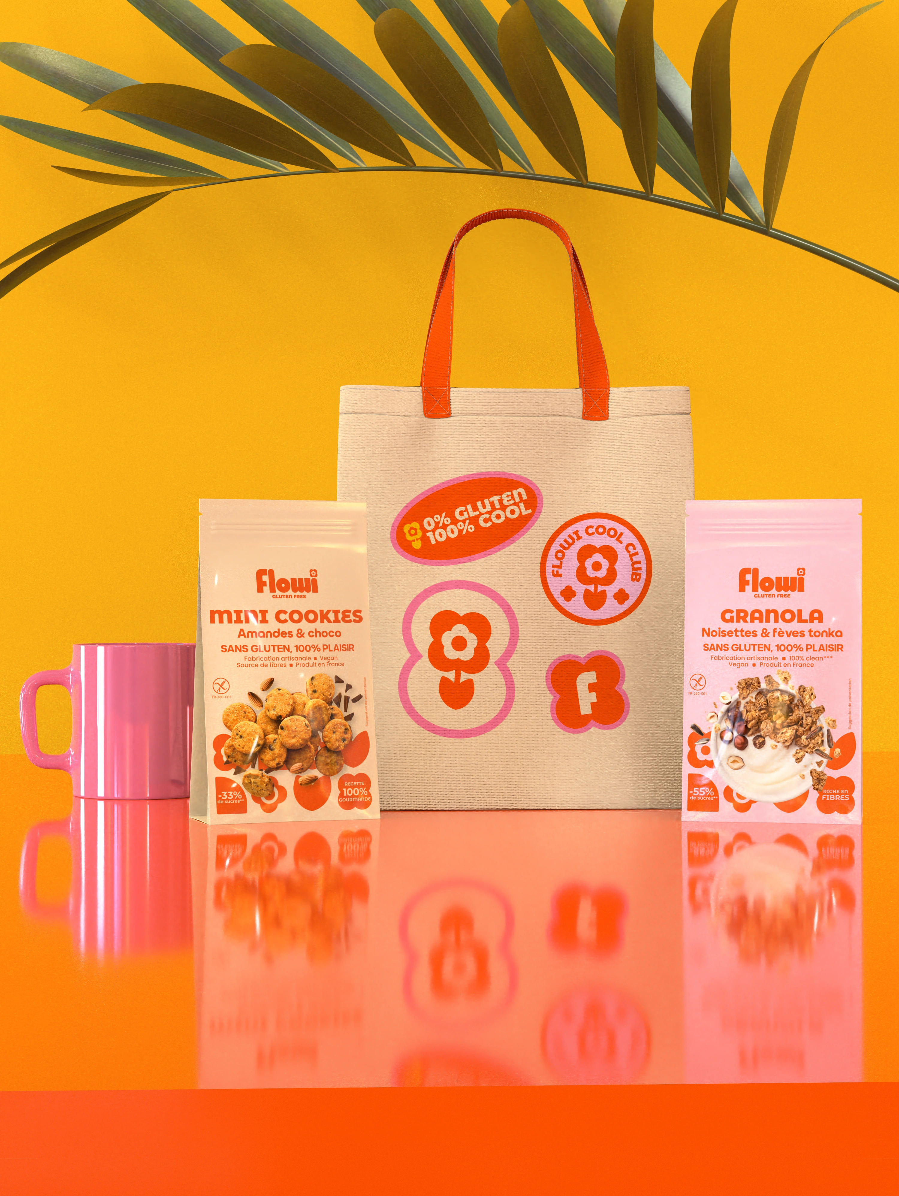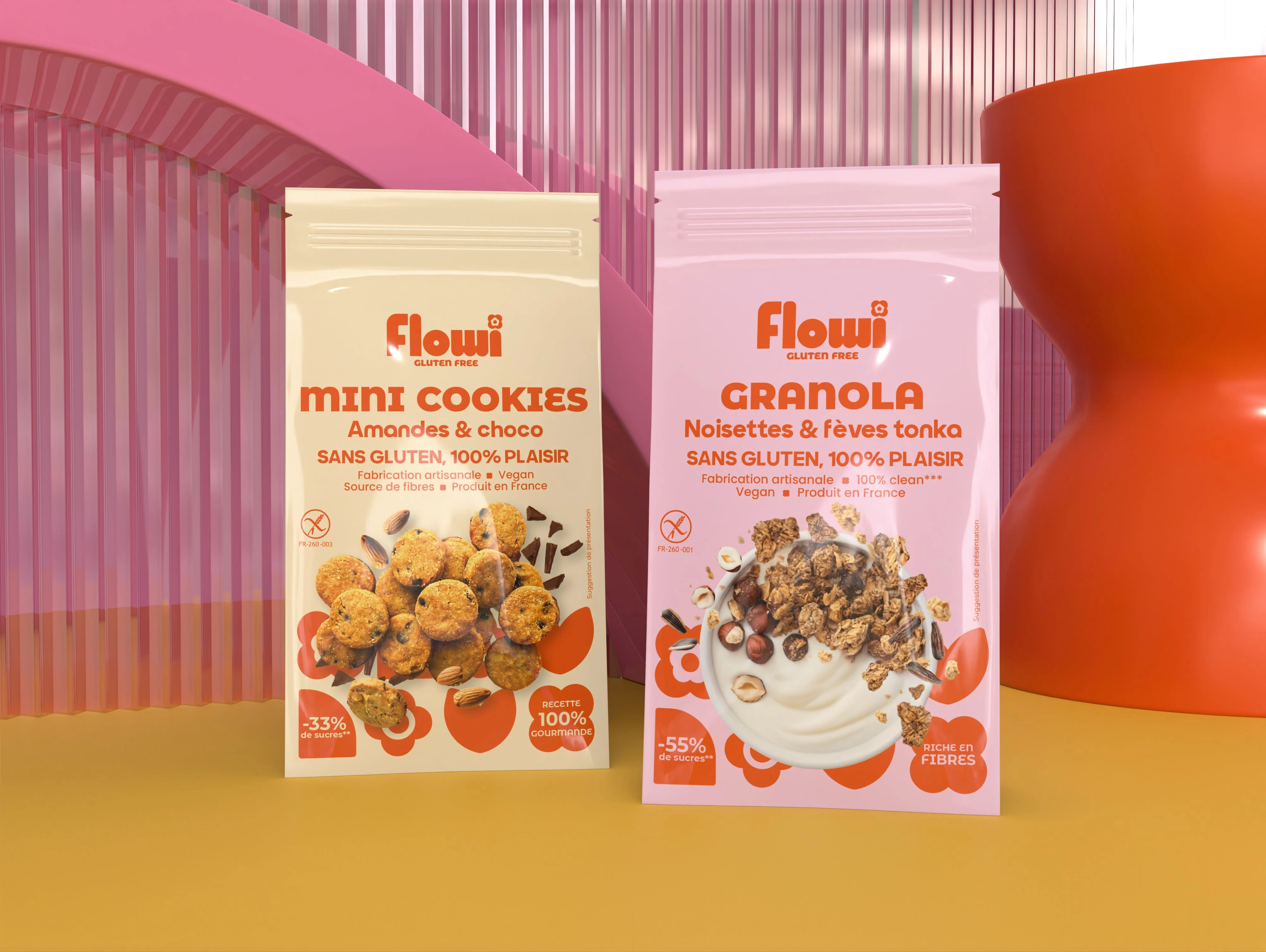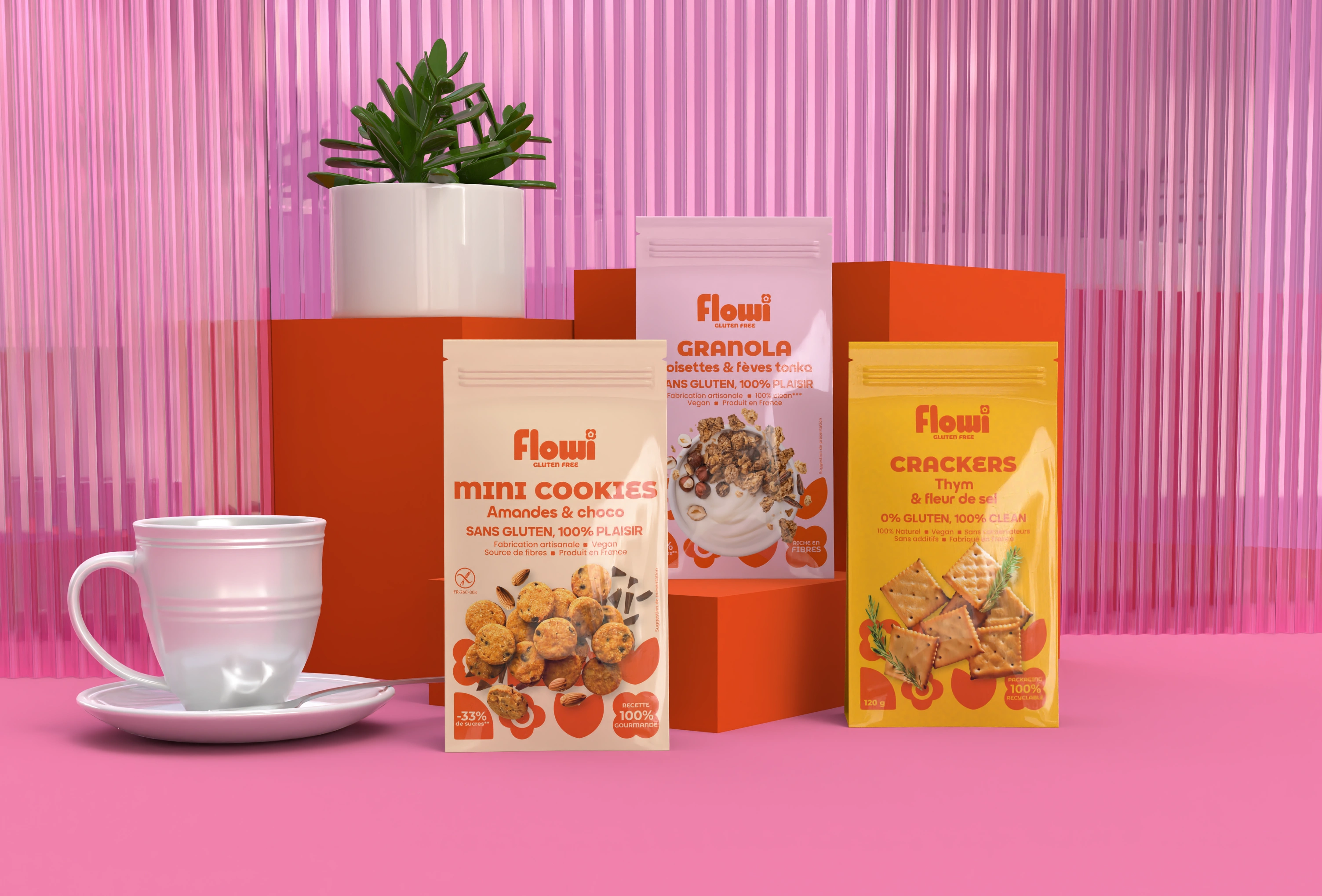 Flowi, a joyful and retro French gluten free brand that aims to make gluten-free eating more fun and less “punitive.” The brand offers a variety of product lines (pasta, biscuits, granola) targeting an urban female audience seeking to combine enjoyment and well-being with a gluten-free diet.