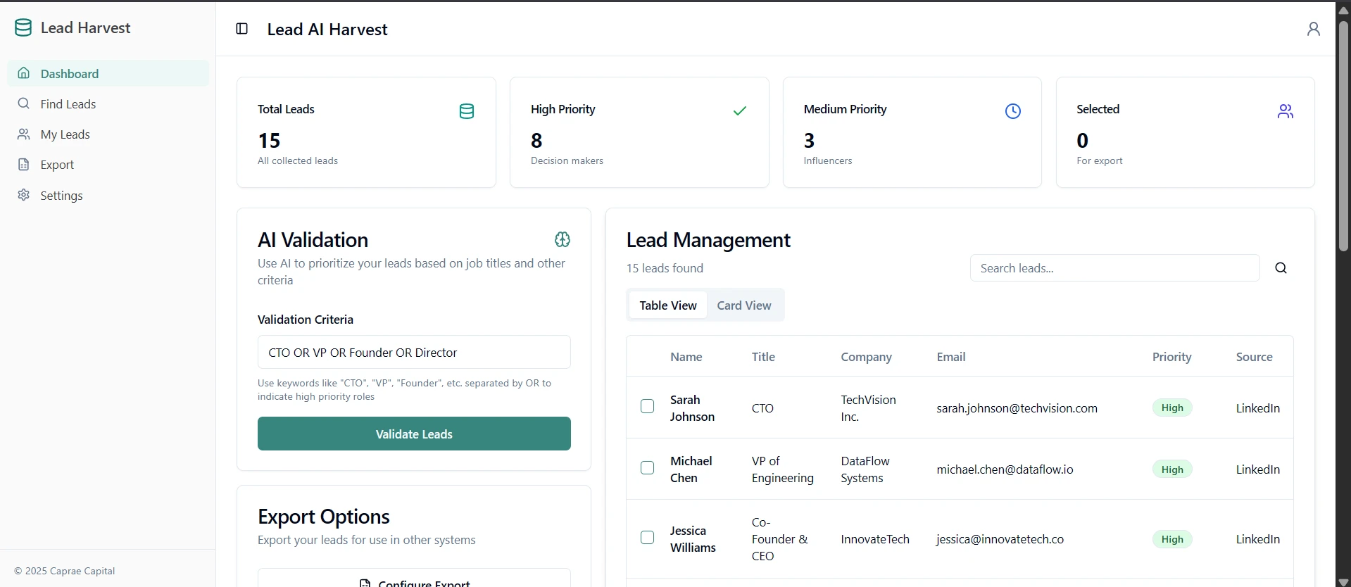 Developed AI-powered lead generation tool with multi-source scraping and validation.