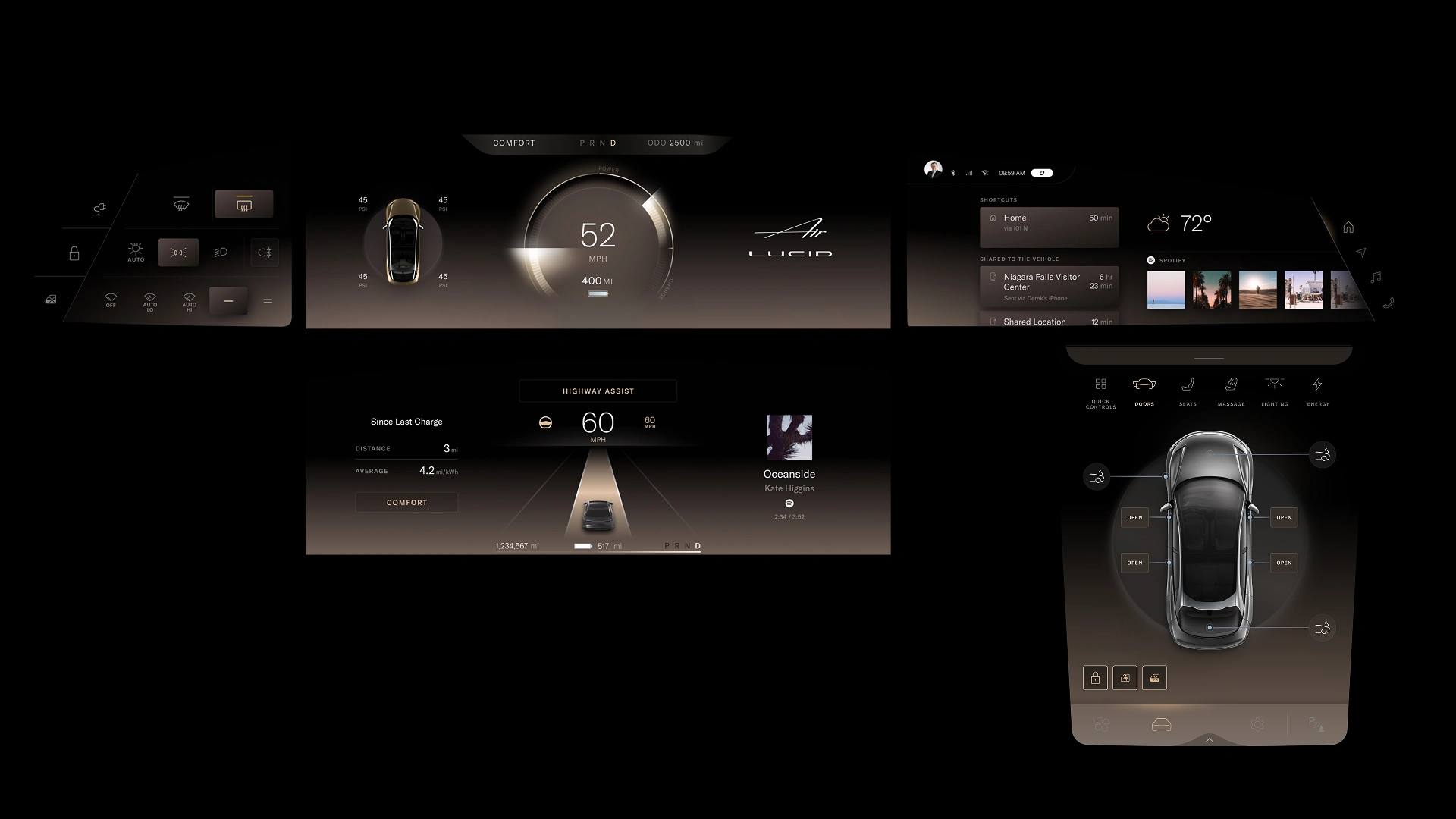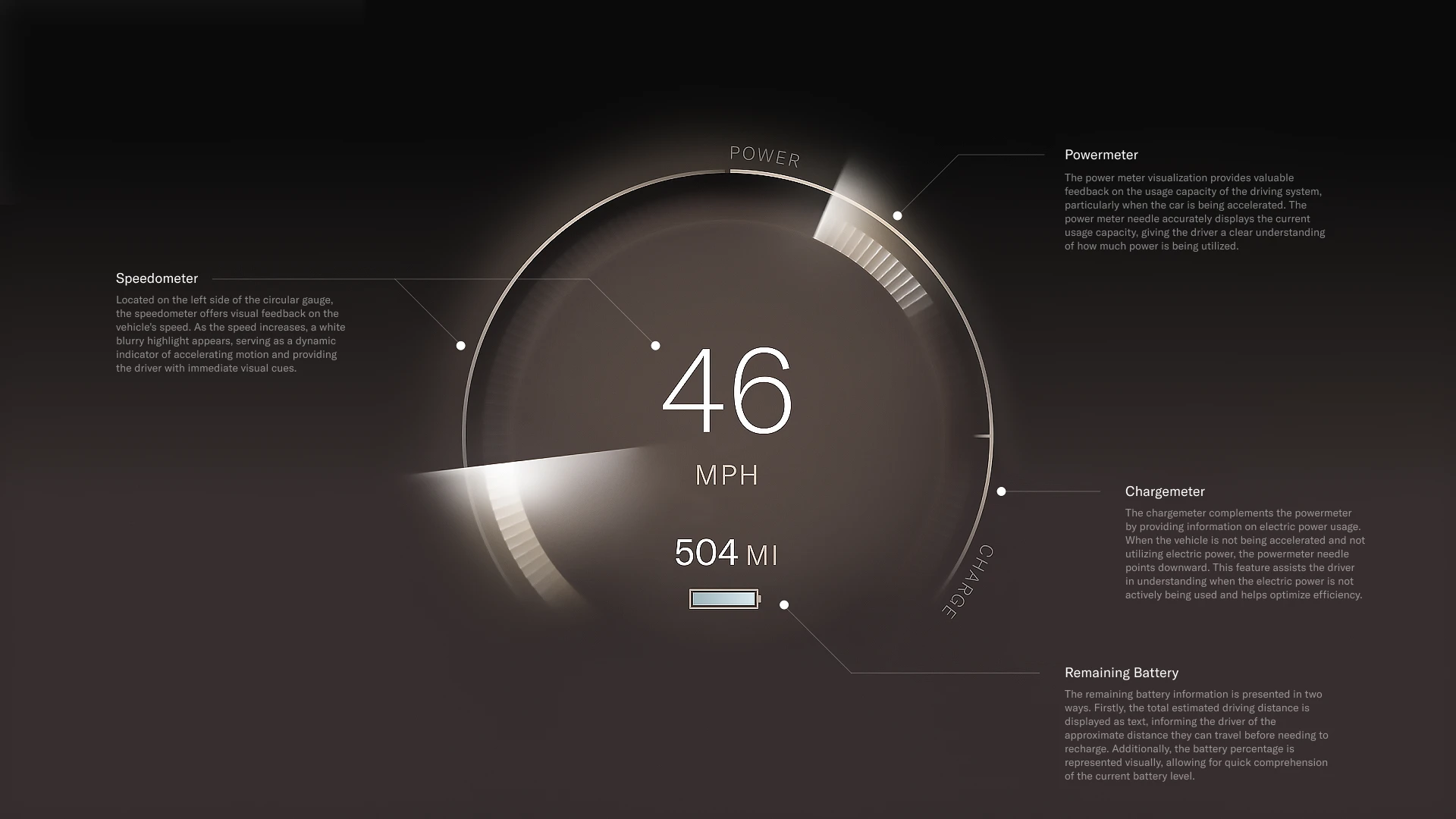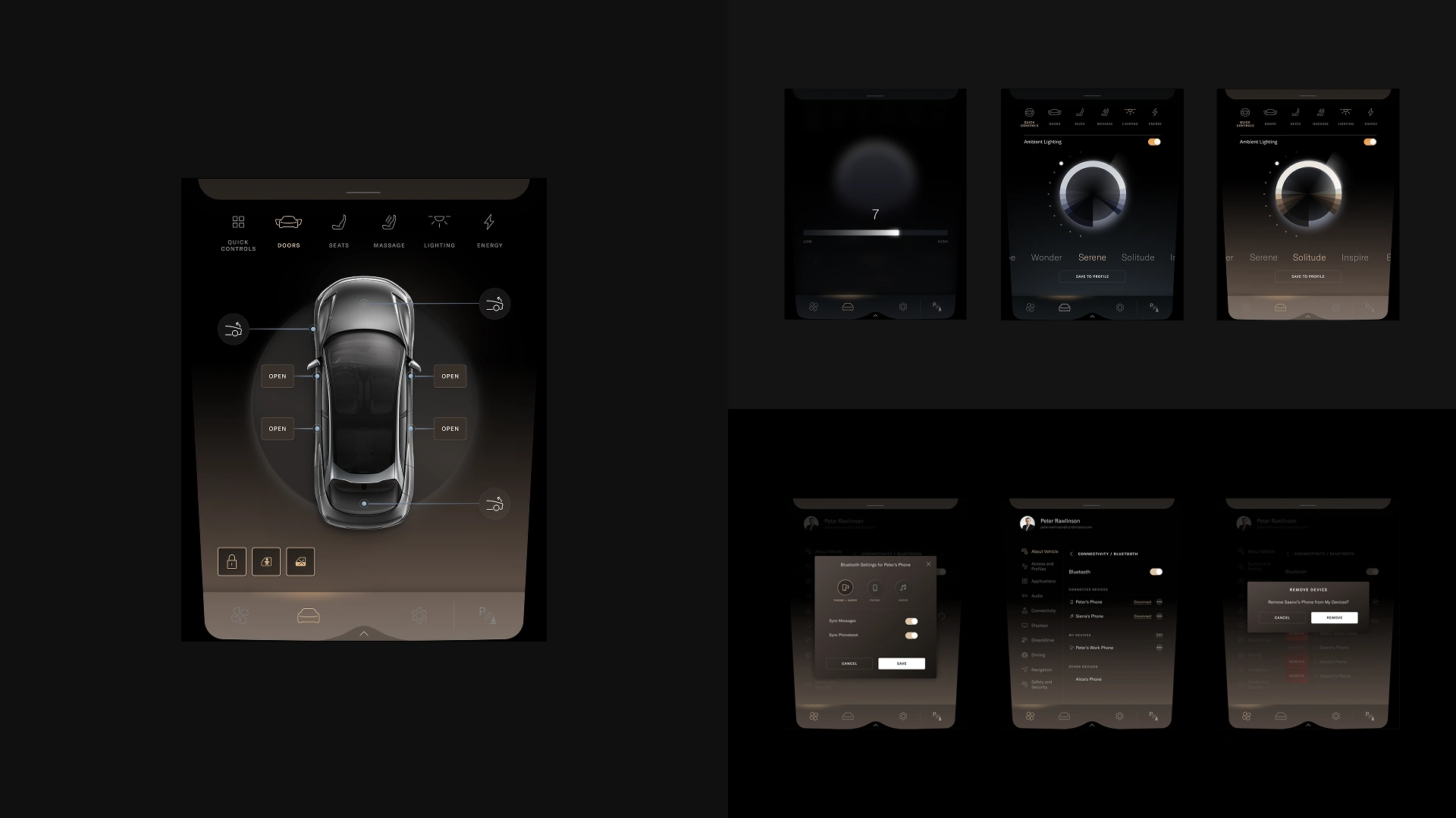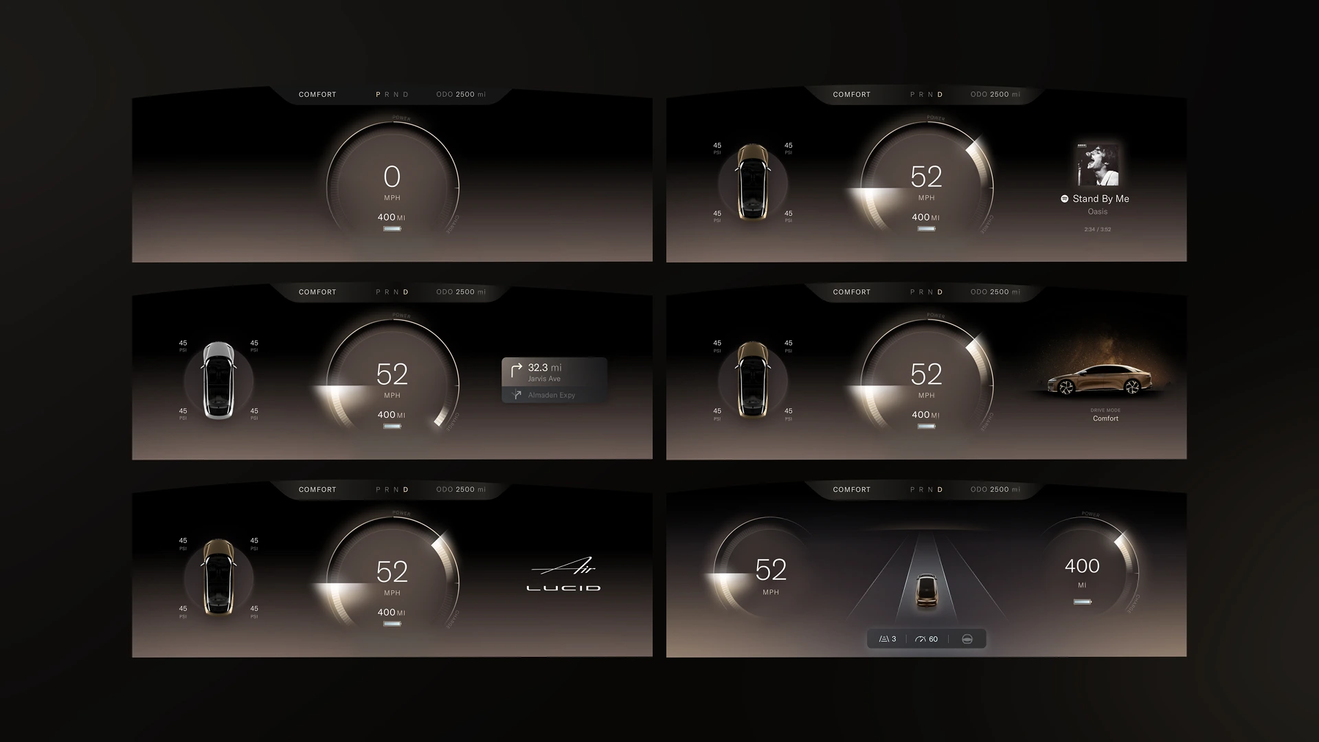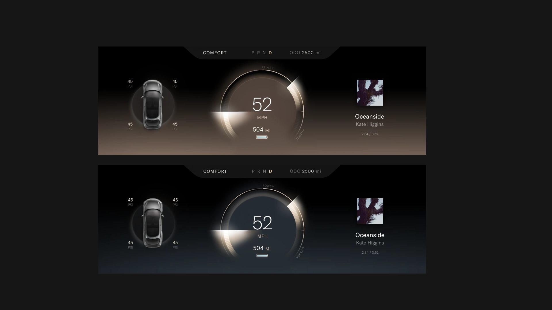 Oversaw the art direction and in-car UI design, covering speedometer dashboards, closure controls, ambient lighting, and iconography.