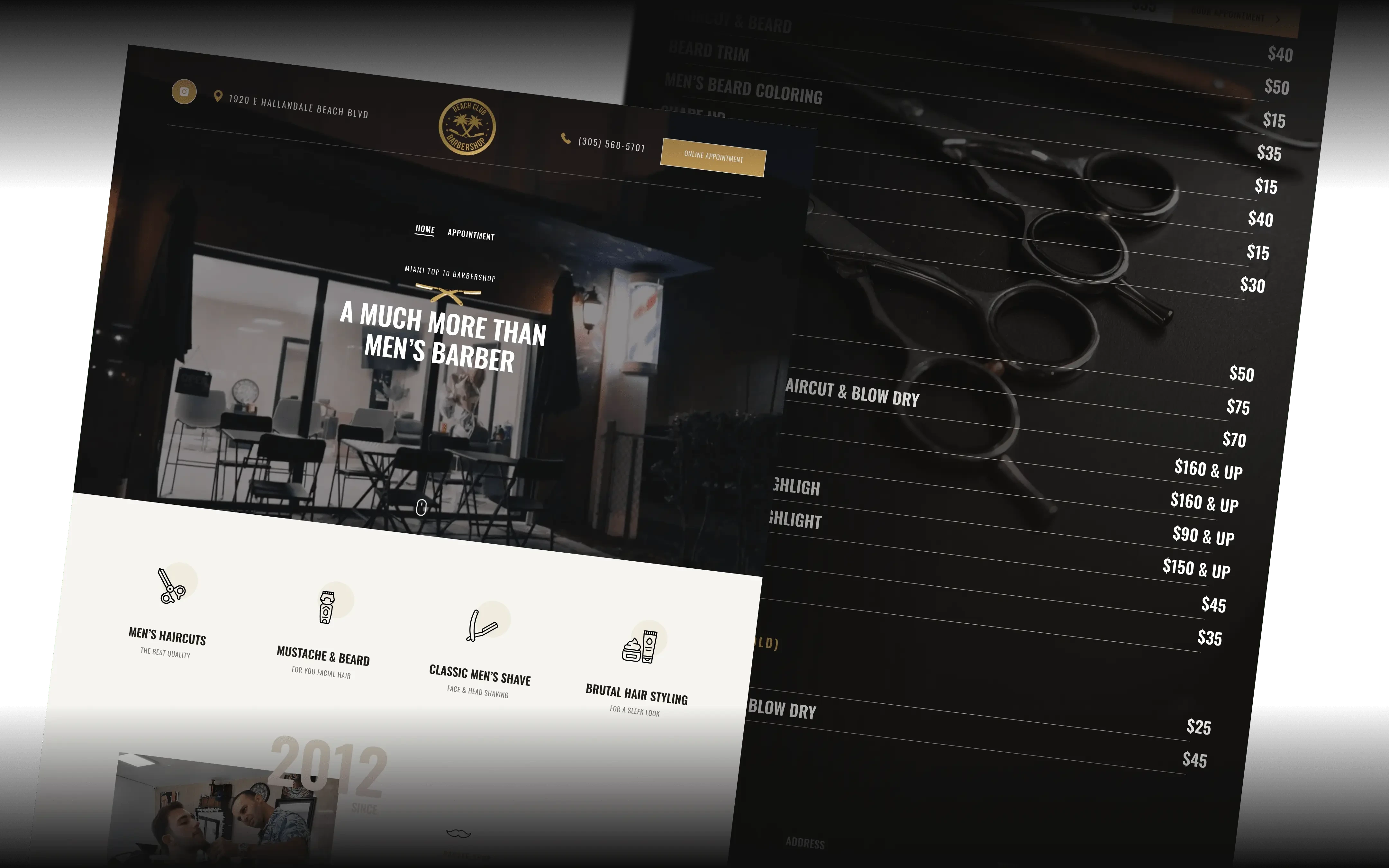 We make it easy and appealing to schedule a professional visit to the barbers. Through the website styling we sell the professionalism and results of the service and cover all the services openly. Combined, this ensures that the client feels confident about the choice they make.