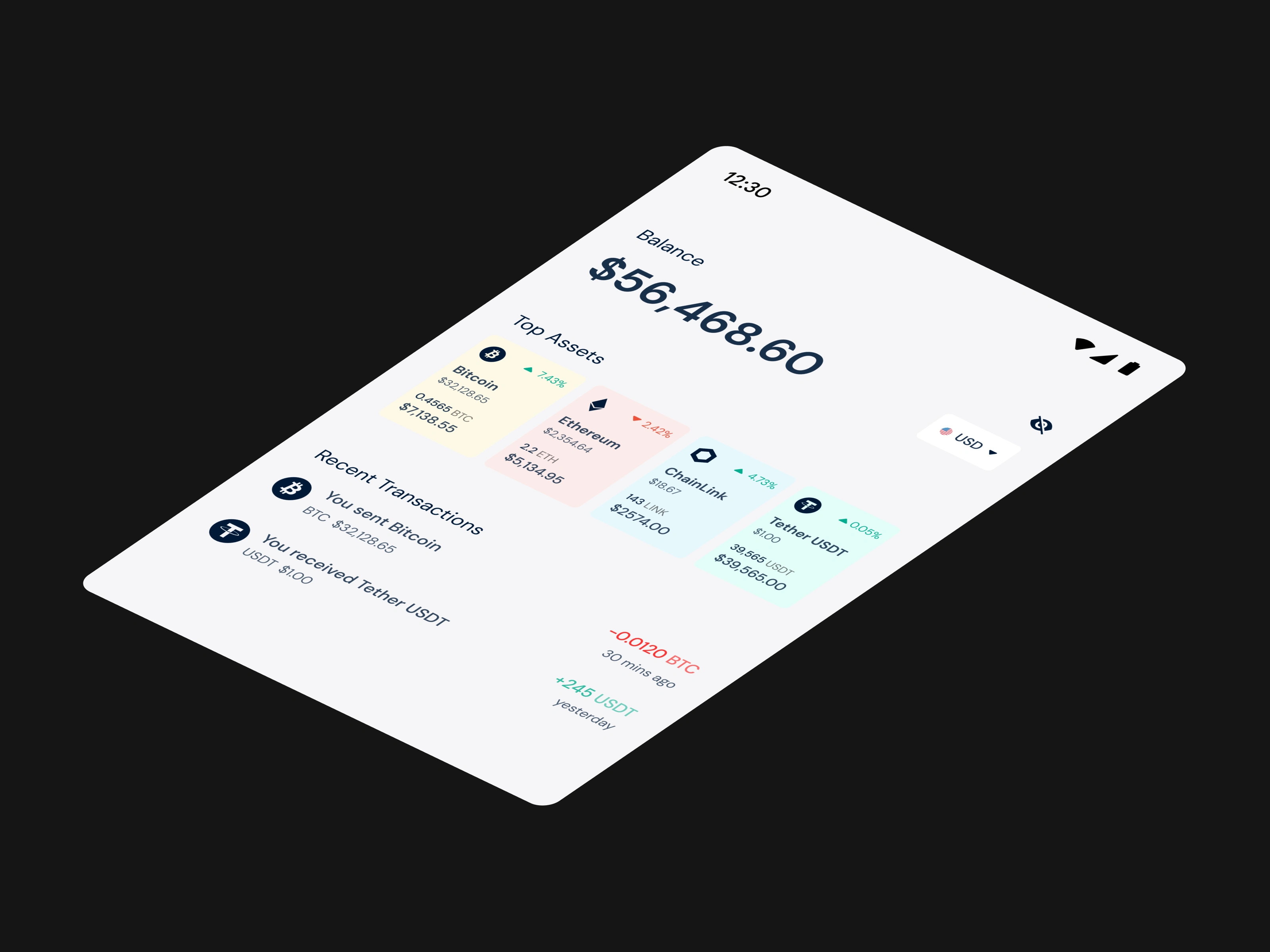I designed a sleek and intuitive dashboard interface for a cryptocurrency wallet application, emphasising simplicity, data clarity, and user engagement. The project included creating both light and dark mode versions to enhance user accessibility and visual preference. Key components included the balance overview, top assets display, and recent transaction history, featuring clear visual cues for performance trends.