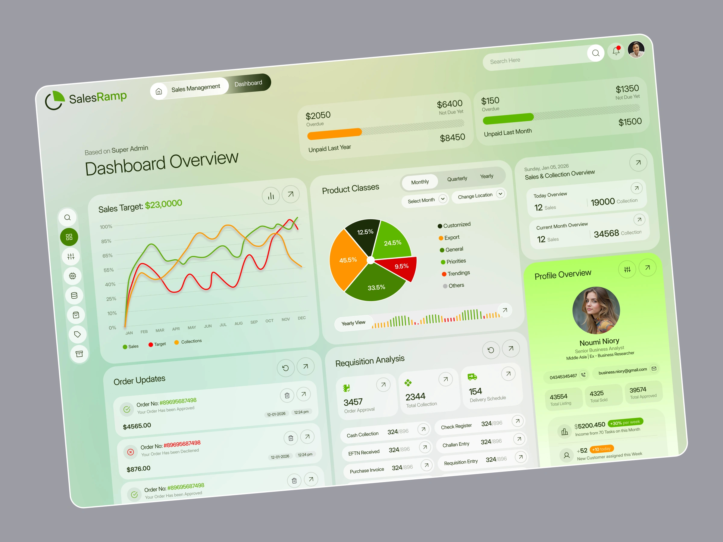 SalesRamp is a modern sales management system dashboard designed to give businesses complete visibility and control over their sales pipeline. It centralizes key metrics like lead tracking, conversion rates, revenue forecasting, and team performance into an intuitive, data-driven interface. With customizable dashboards, smart analytics, and real-time insights, SalesRamp empowers managers to identify bottlenecks, optimize strategies, and drive consistent growth. Its clean design and seamless workflow make it not just a reporting tool, but a performance accelerator for any sales-driven organization.
