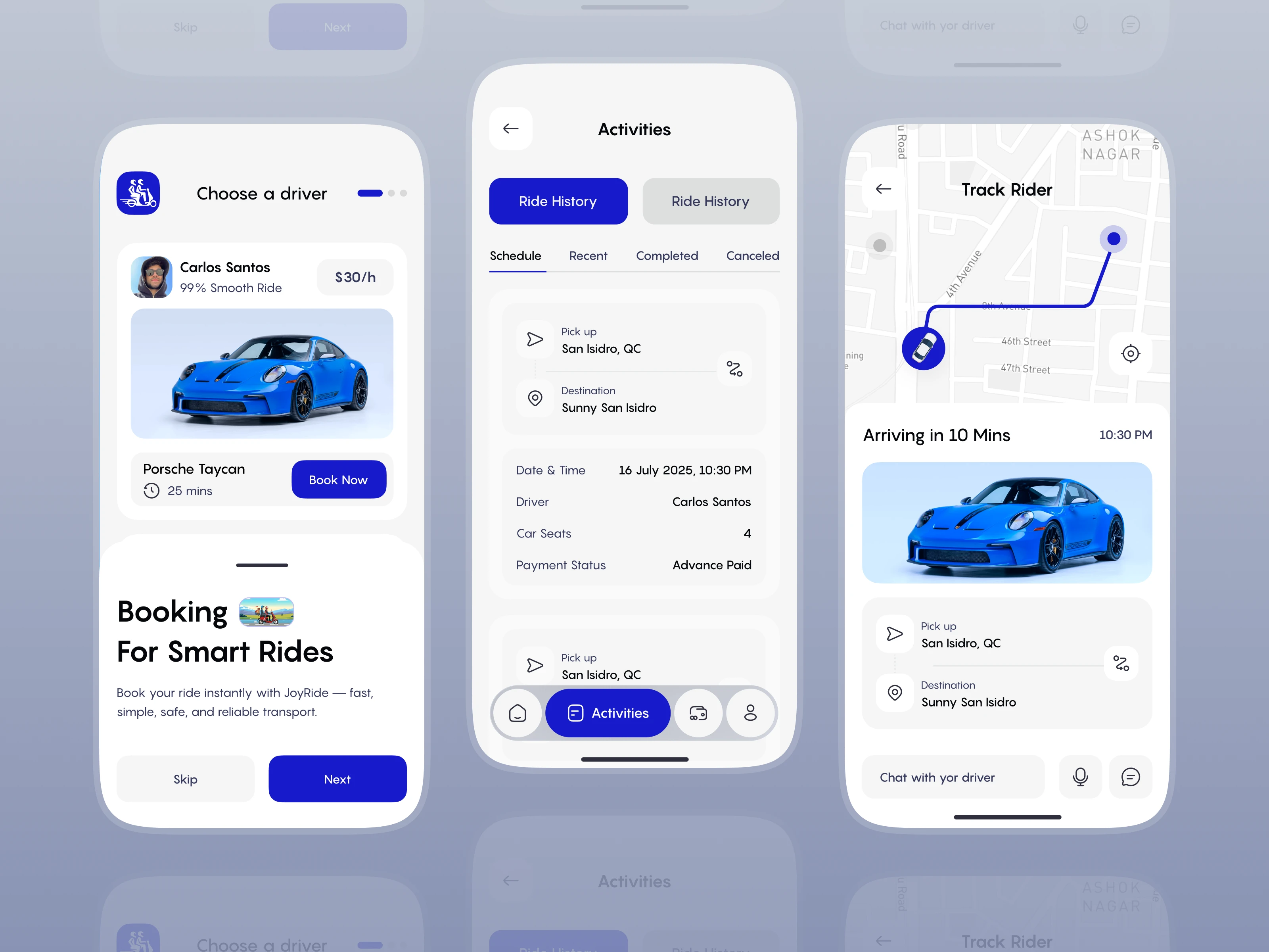 Here’s my latest redesign concept for JoyRide — a multi-service ride-hailing app offering Moto Taxi, Car, and Delivery bookings. The goal was to craft a clean, intuitive interface that simplifies the user journey from booking a ride to tracking deliveries in real time.