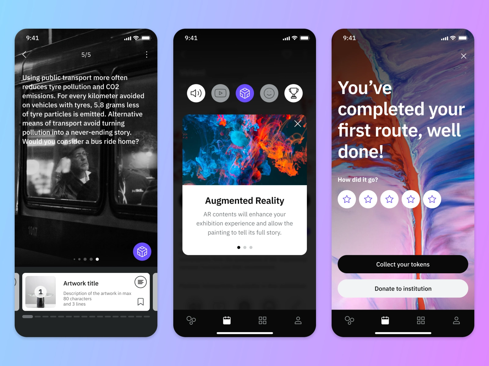 App design for Particle, the digital solution for all art enthusiasts and experts through a new way of experiencing exhibitions. Particle creates augmented art experiences across interconnected ecosystems, mainly among digital and physical environments.