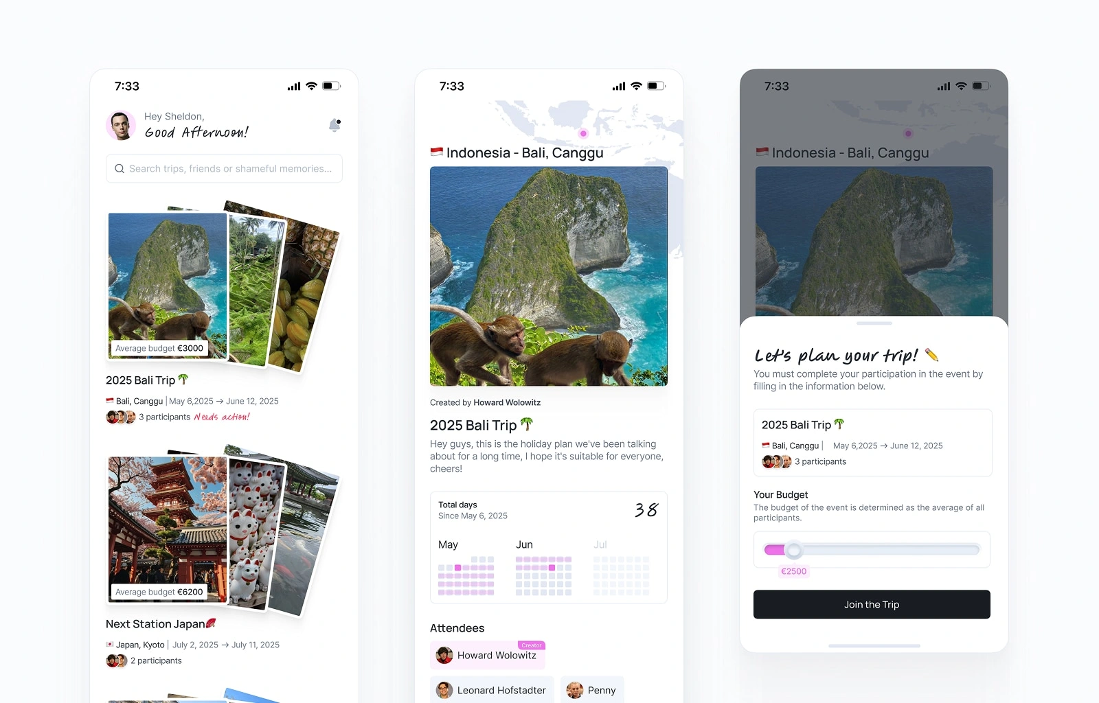 An app for planning trips with friends, from idea to itinerary. I created the full concept and designed the entire product from scratch.