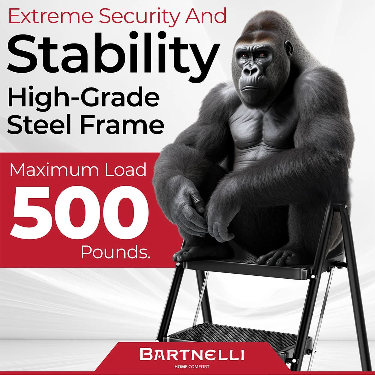 Icreated high-quality 3D renders and stunning Amazon infographics for Bartinelli's 3-Step Ladder. The 3D renders showcase the ladder's sturdy construction and