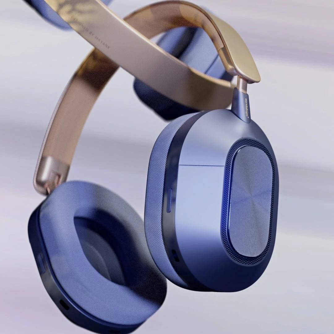 3D headphone design created using procedural modeling in Blender and composited in Photoshop.