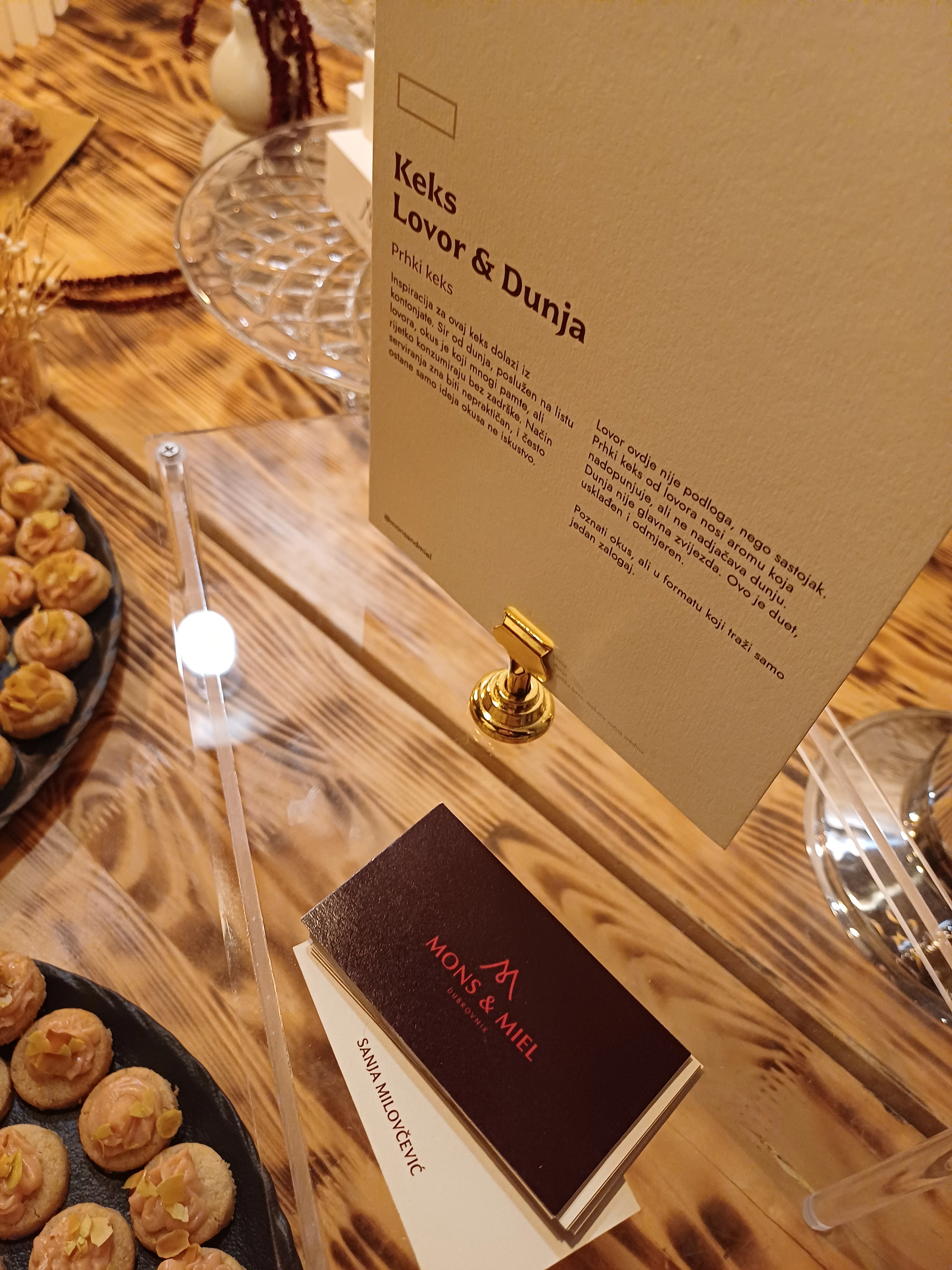 For the Millefoglie Cake Show launch, every product got its own card. Not a description. Not an ingredient list. A story. Written and designed like museum exhibition notes. The lavender macaron card talked about restraint. The rogač cookie card made the argument that carob had always deserved better. People stopped eating to read them. Took them home. Photographed them.